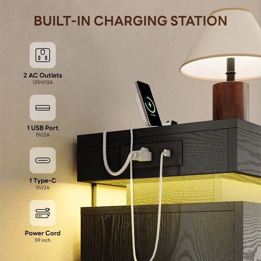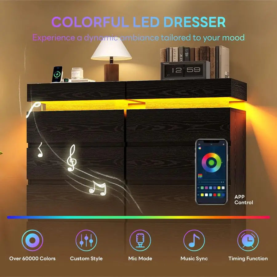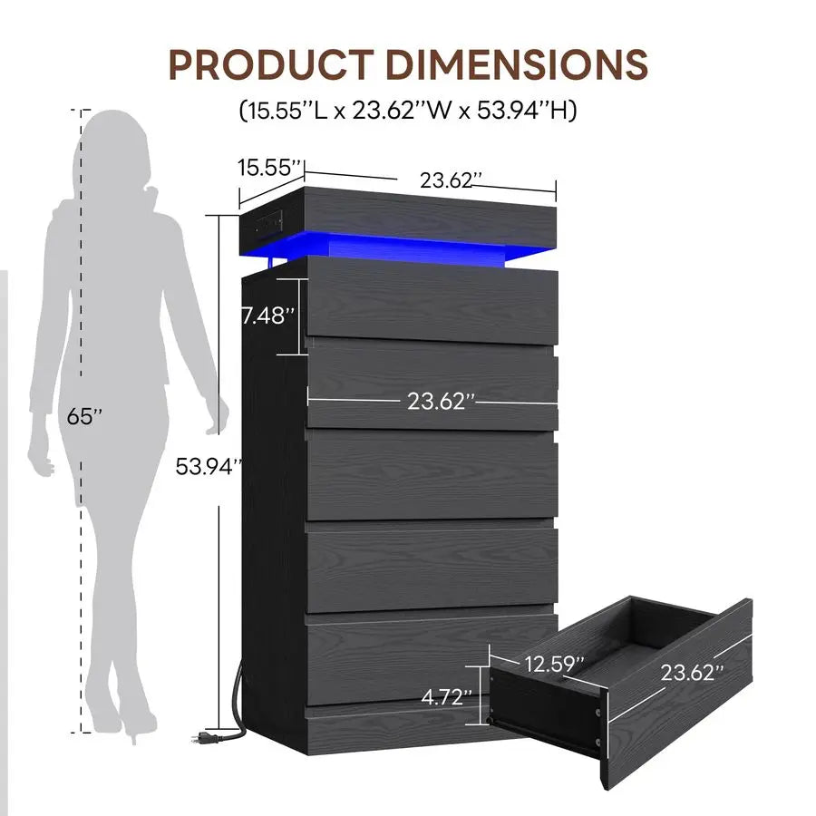 Tall Drawer Dresser for Bedroom Black with Led