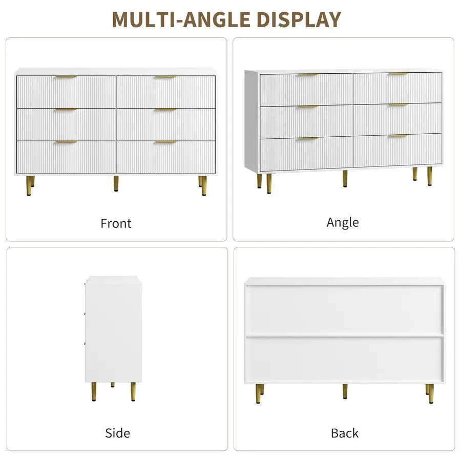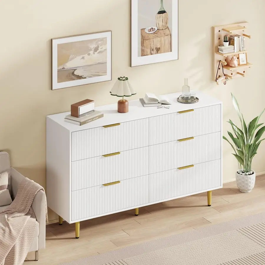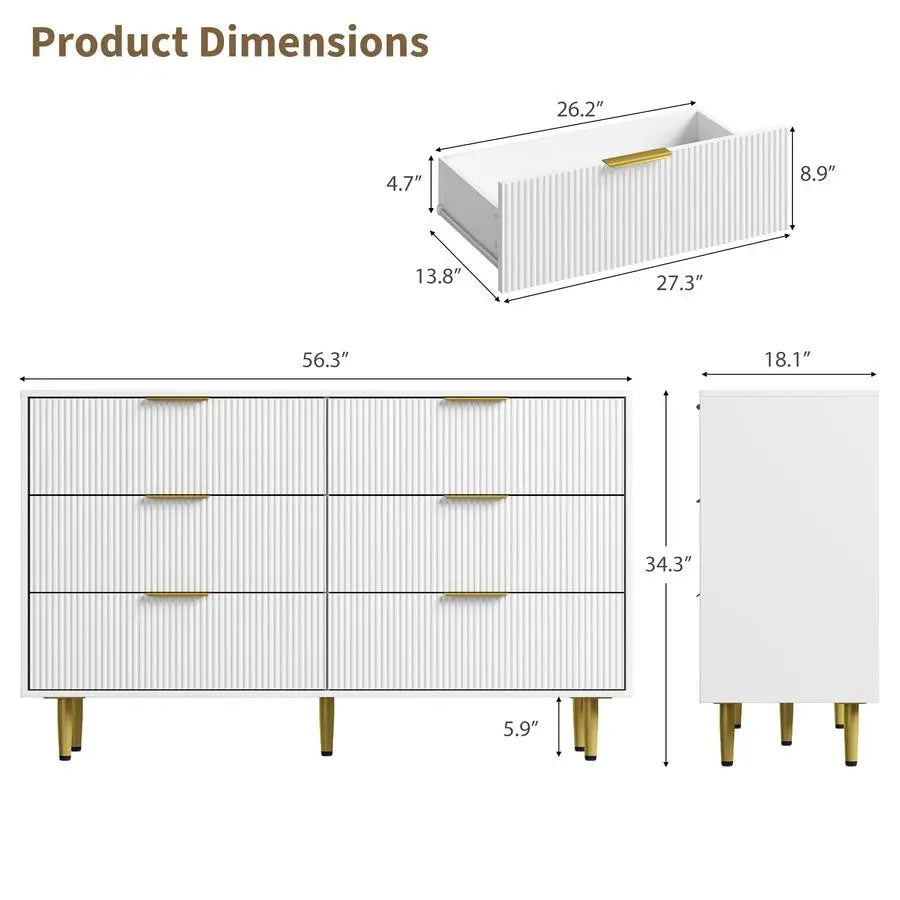 56-Inch Wide Fluted Dresser for Bedroom with Drawers Wooden