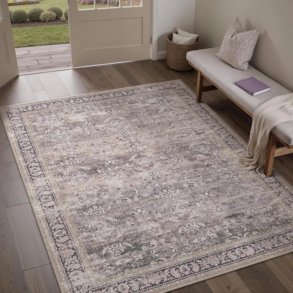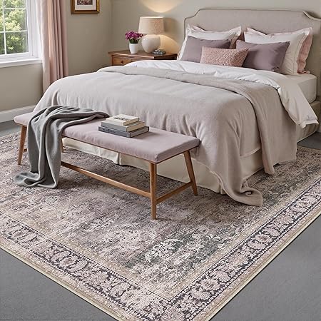 5x7 Purple Area Rug for Living Room Washable