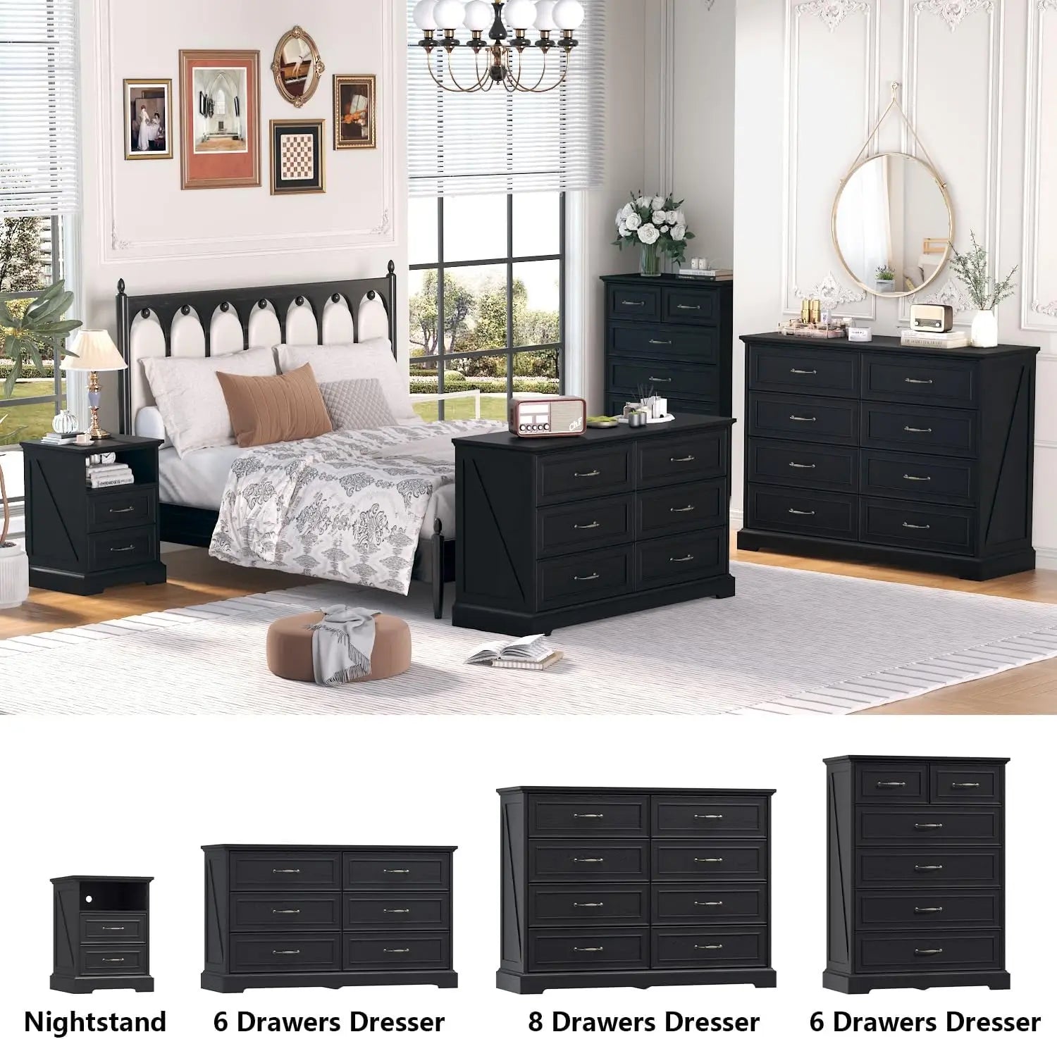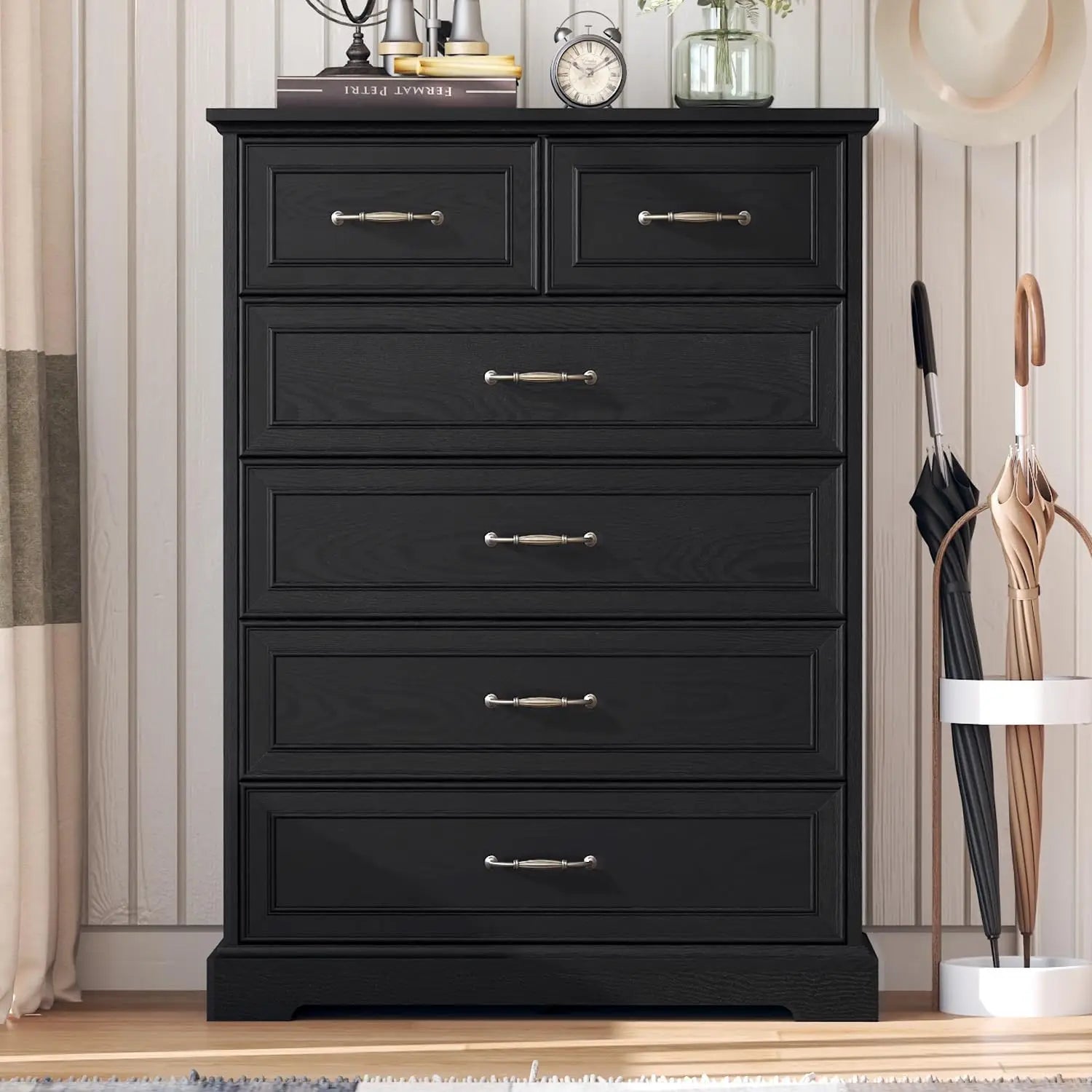 Drawer Wooden Dresser Tall Rustic Farmhouse Chest with Metal