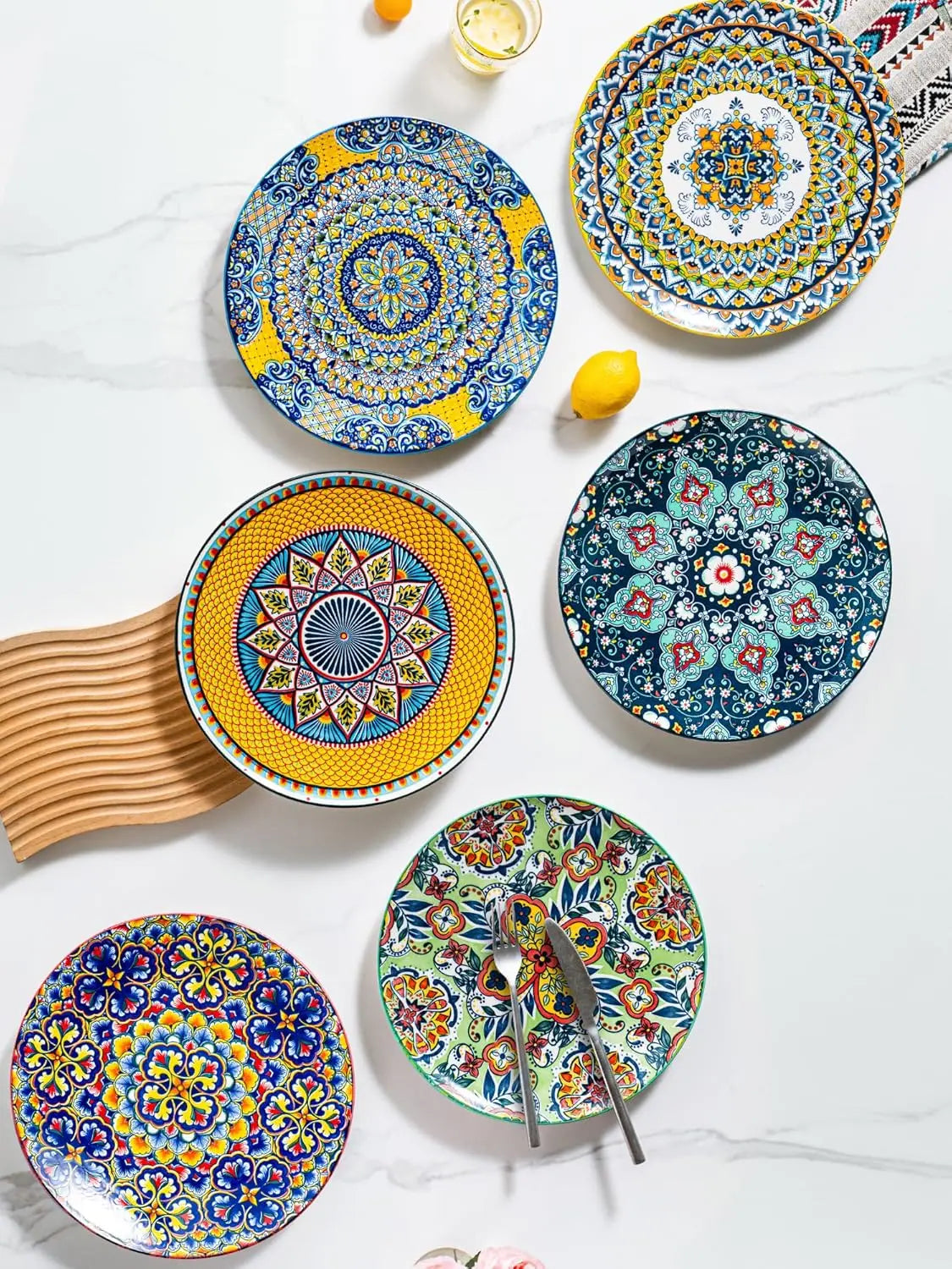 Piece Large Ceramic Dinner Plates Set Inch Colorful Bohemian