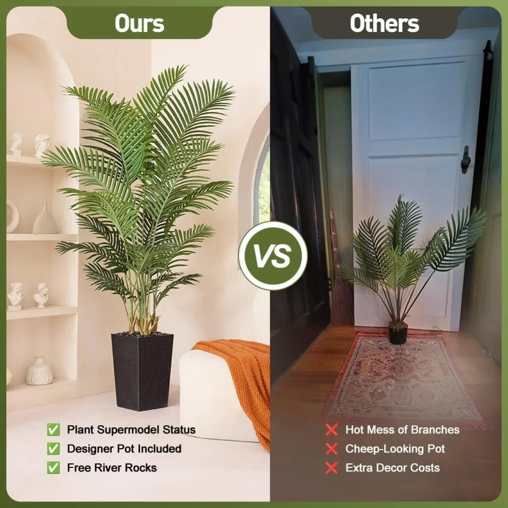 6ft Artificial Palm Tree with Black Planter Pebbles