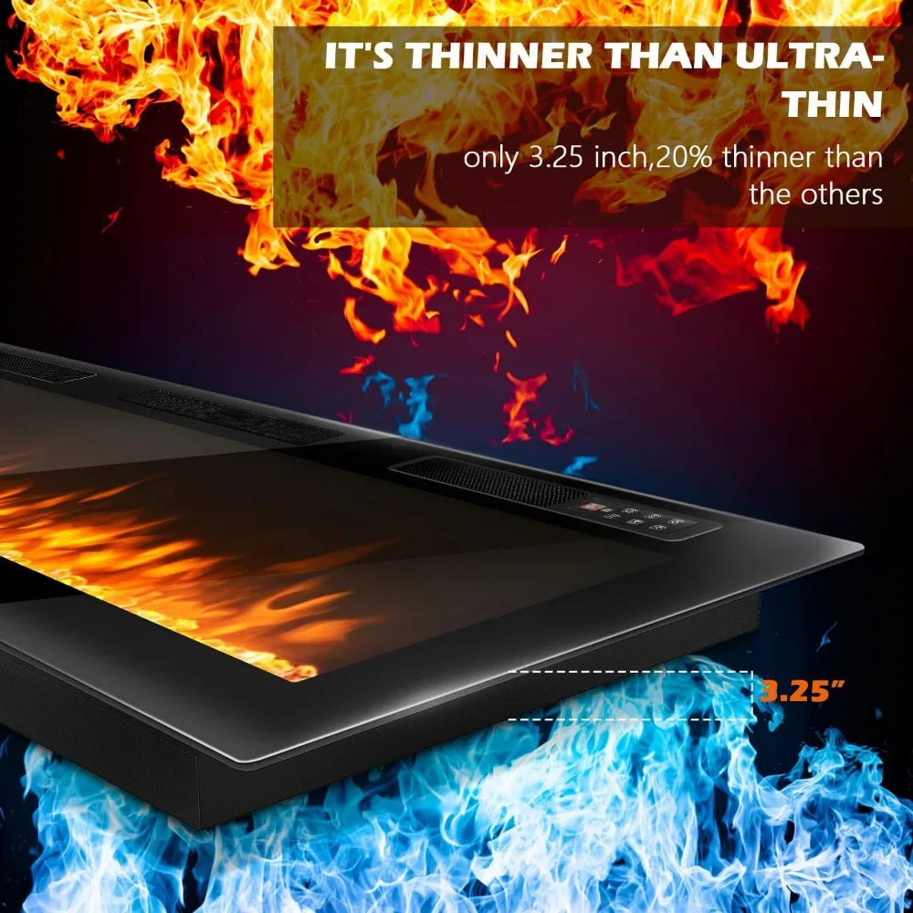 72-Inch Inch Electric Fireplace Recessed Wall Mounted Heater With - Adjustable Height