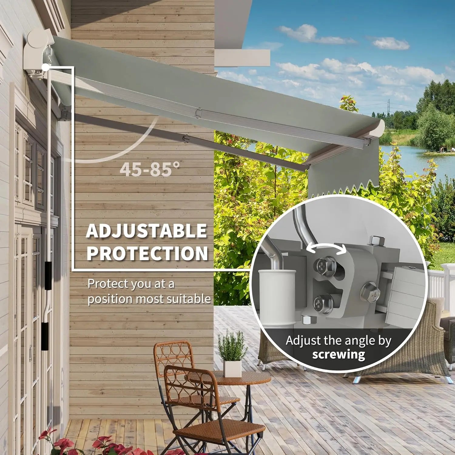 Patio Retractable Awning Manual Exterior Sun Shade Deck Window