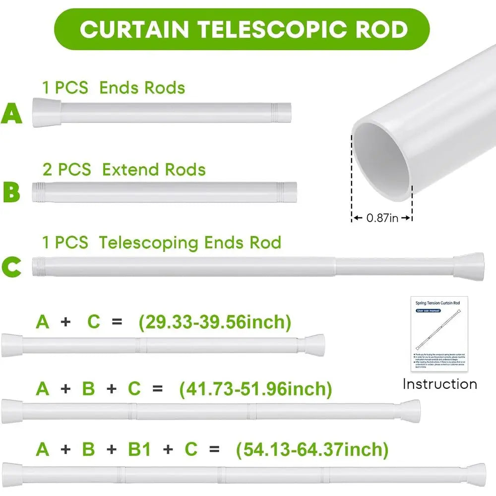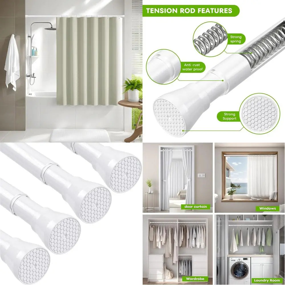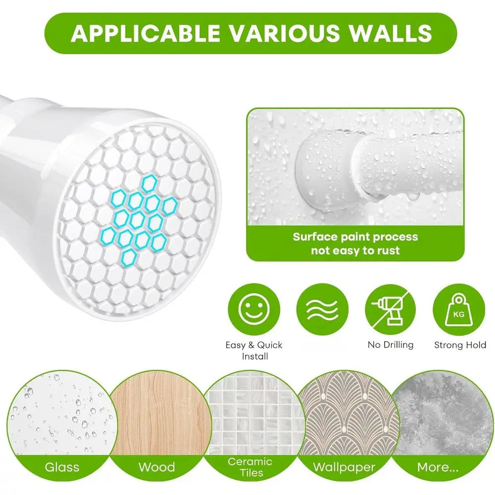 Adjustable 64-Inch Inch Tension Curtain Rod Drill White Shower For - Adjustable Height