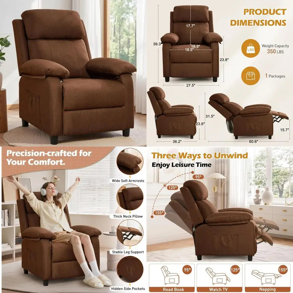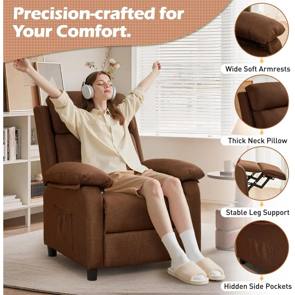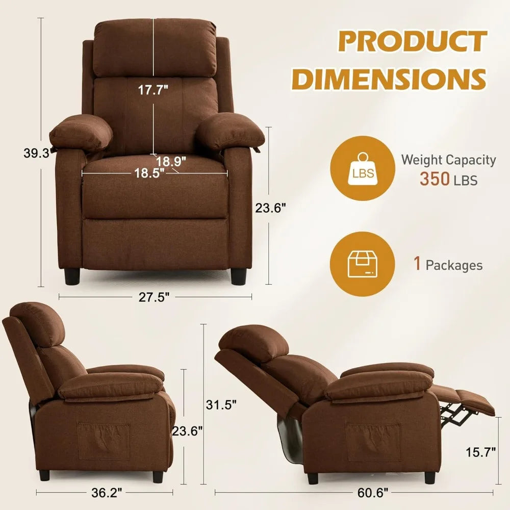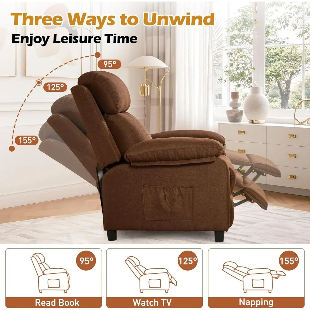 Adult Padded Deep Seat Reading Recliner Chair with Side - Adjustable Height