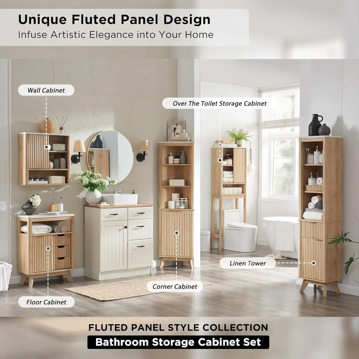 Bathroom Wall Cabinet Fluted Sliding Door Modern Medicine Faux - Adjustable Height