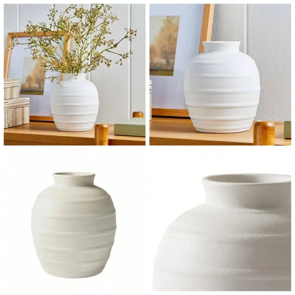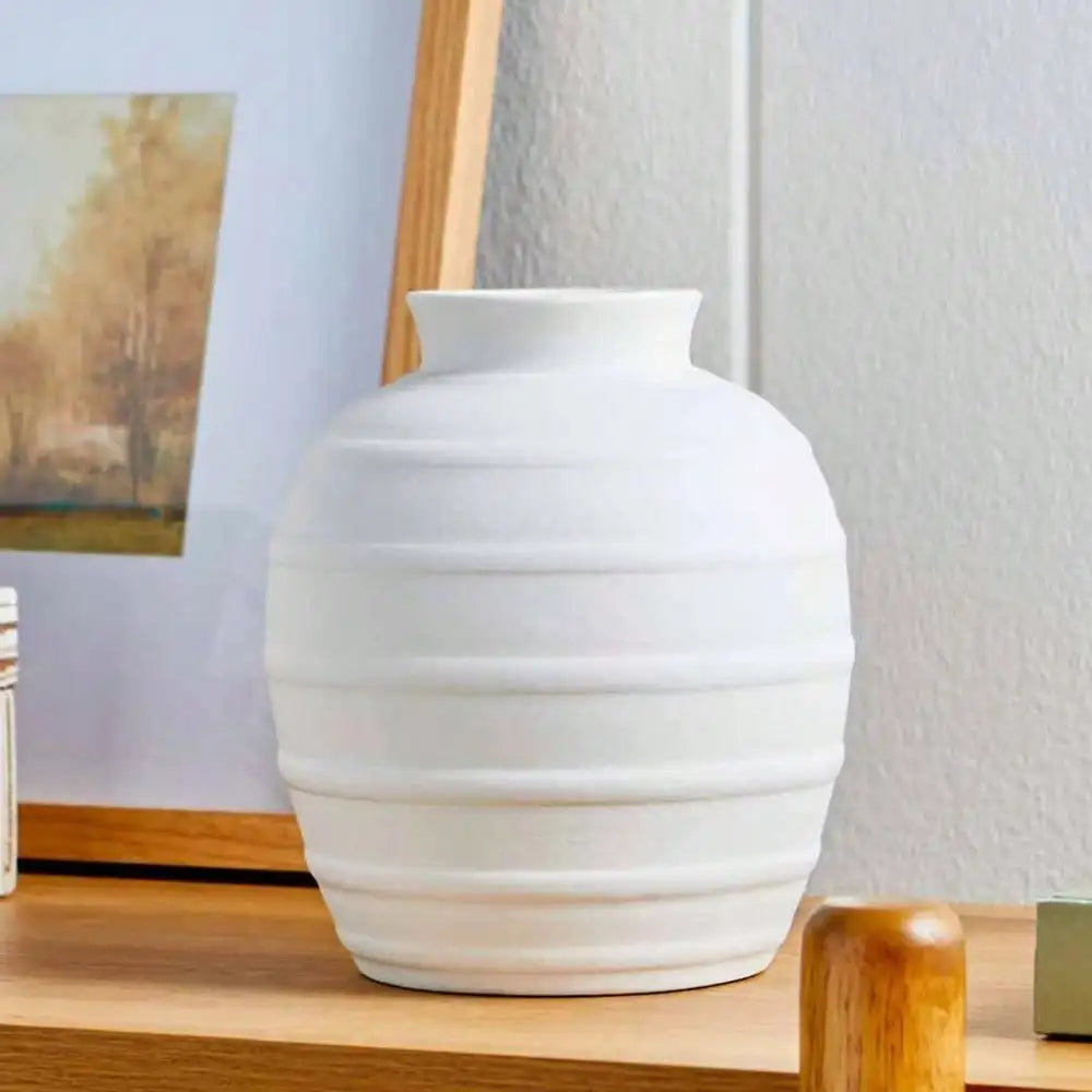 Best Seller White Inch Textured Ribbed Ceramic Vase