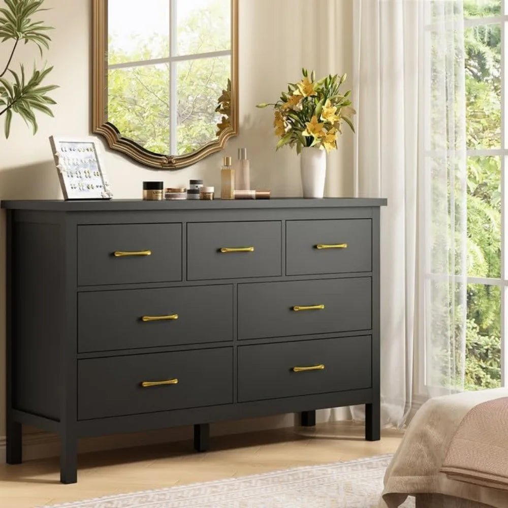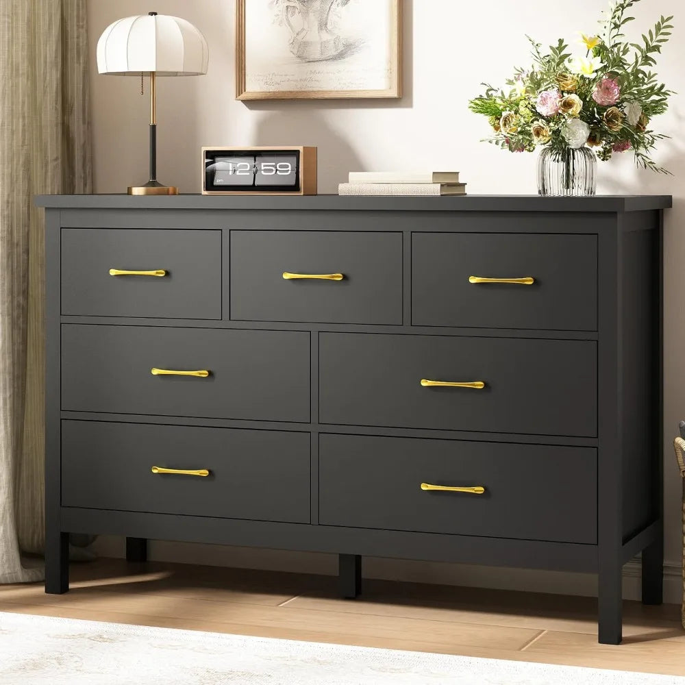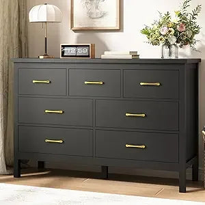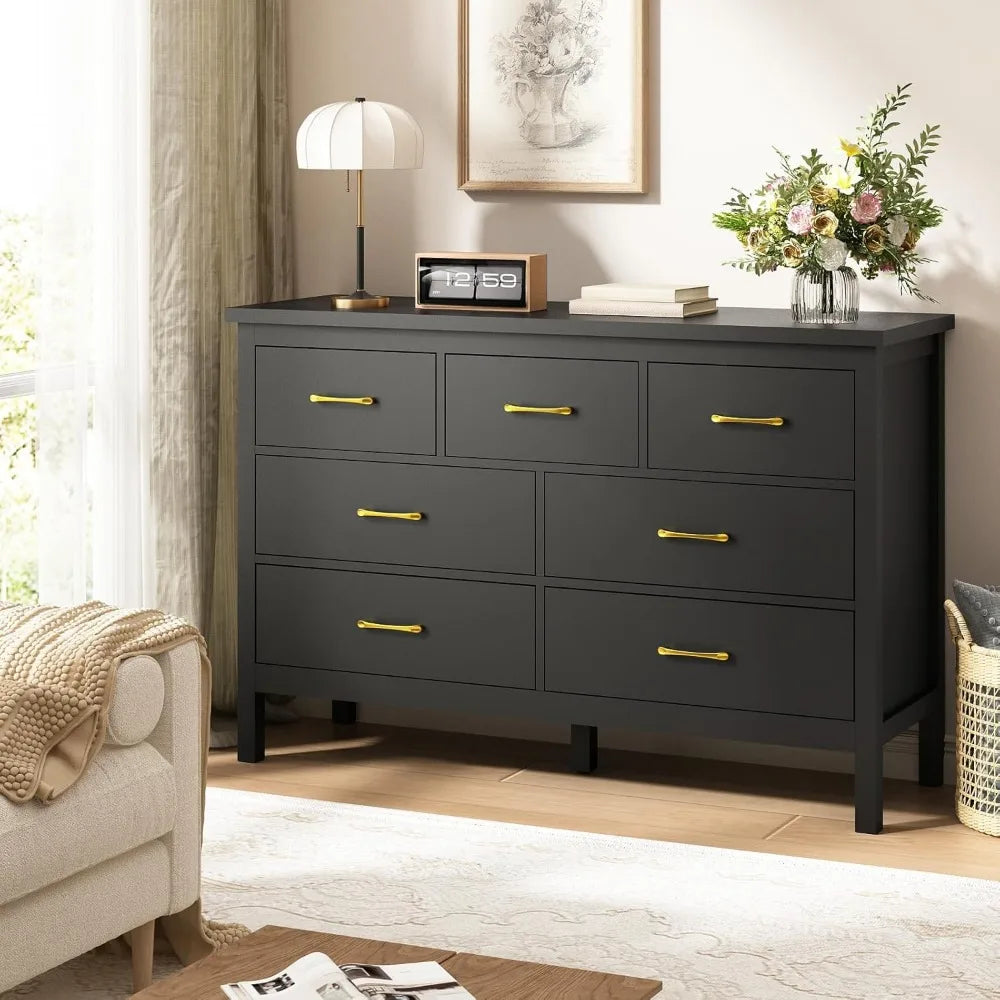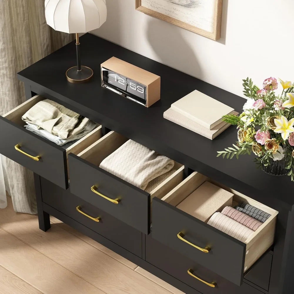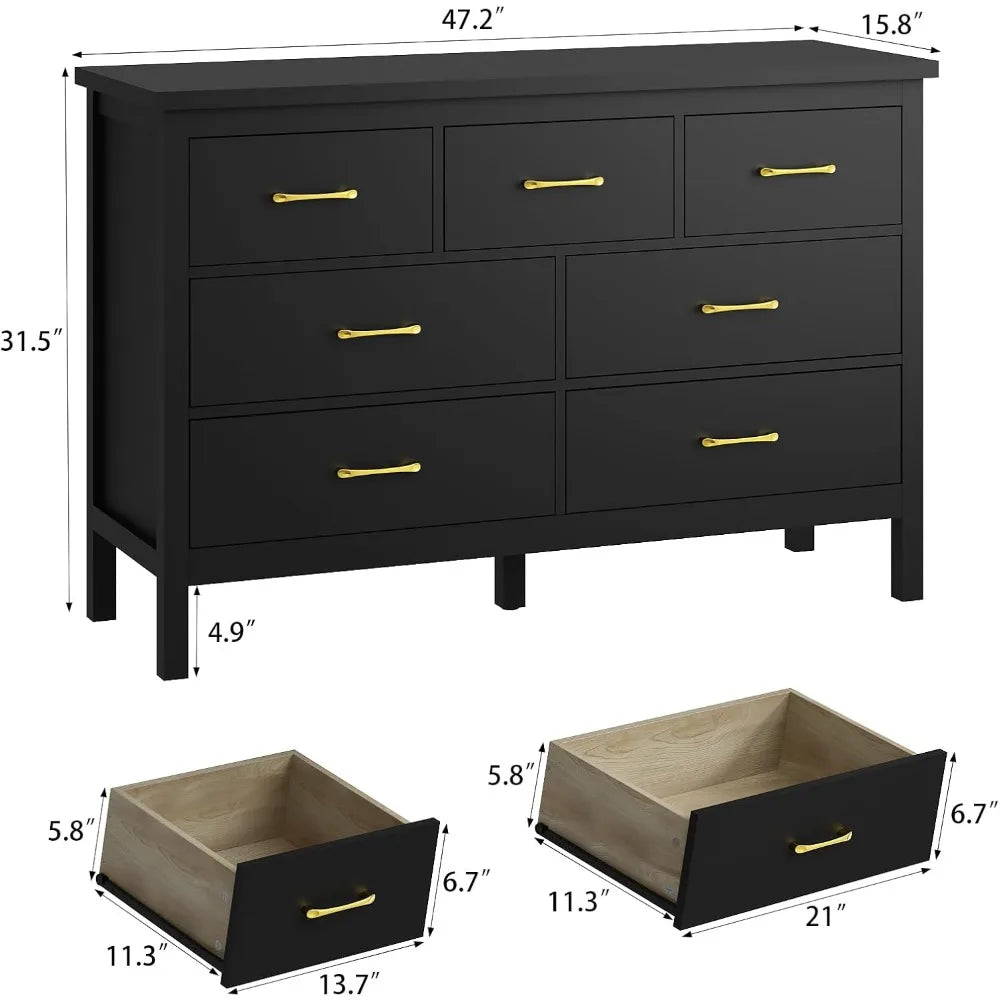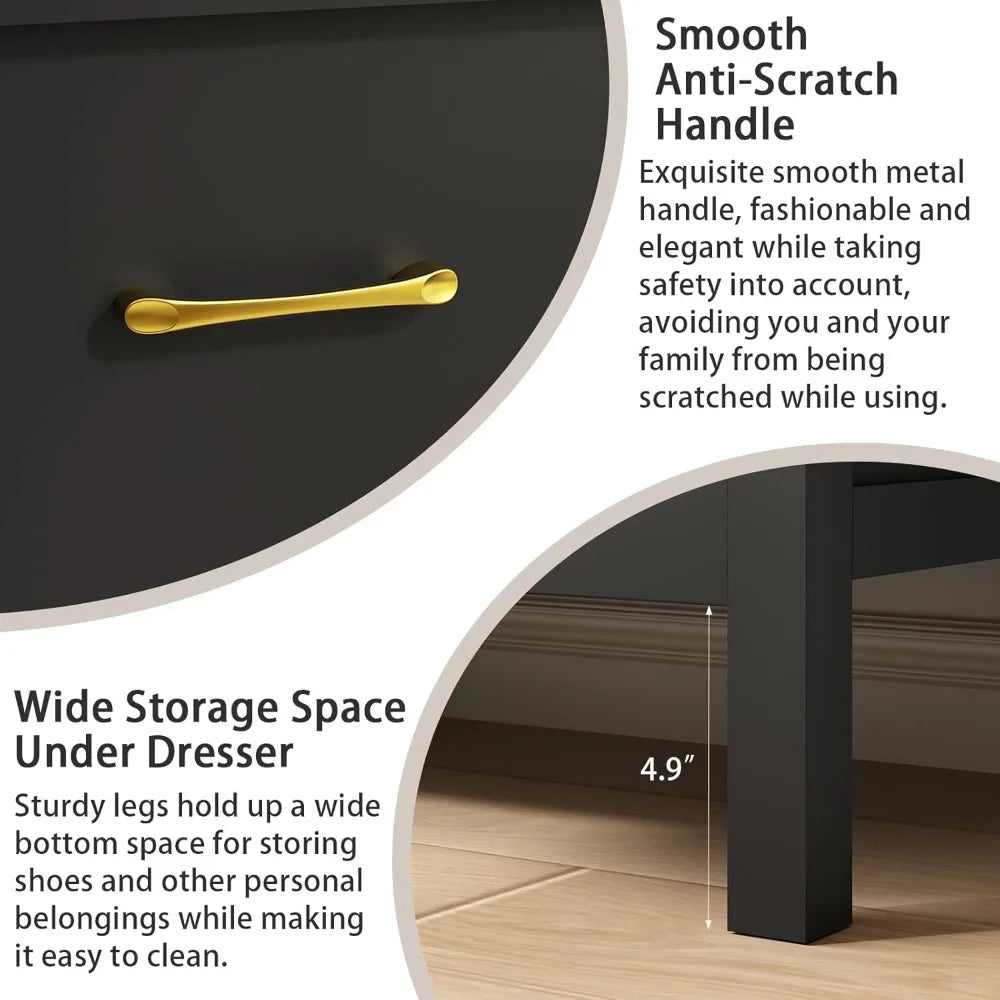 Black Dresser for Bedroom Drawer Wood Double with Golden