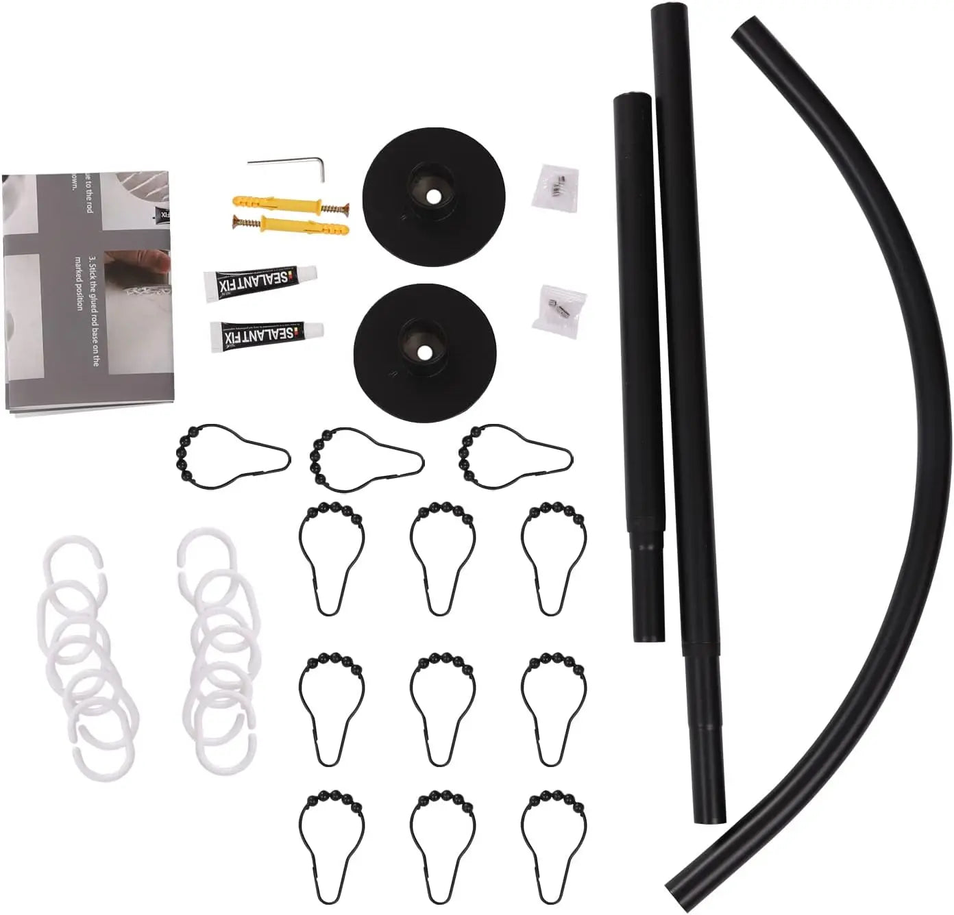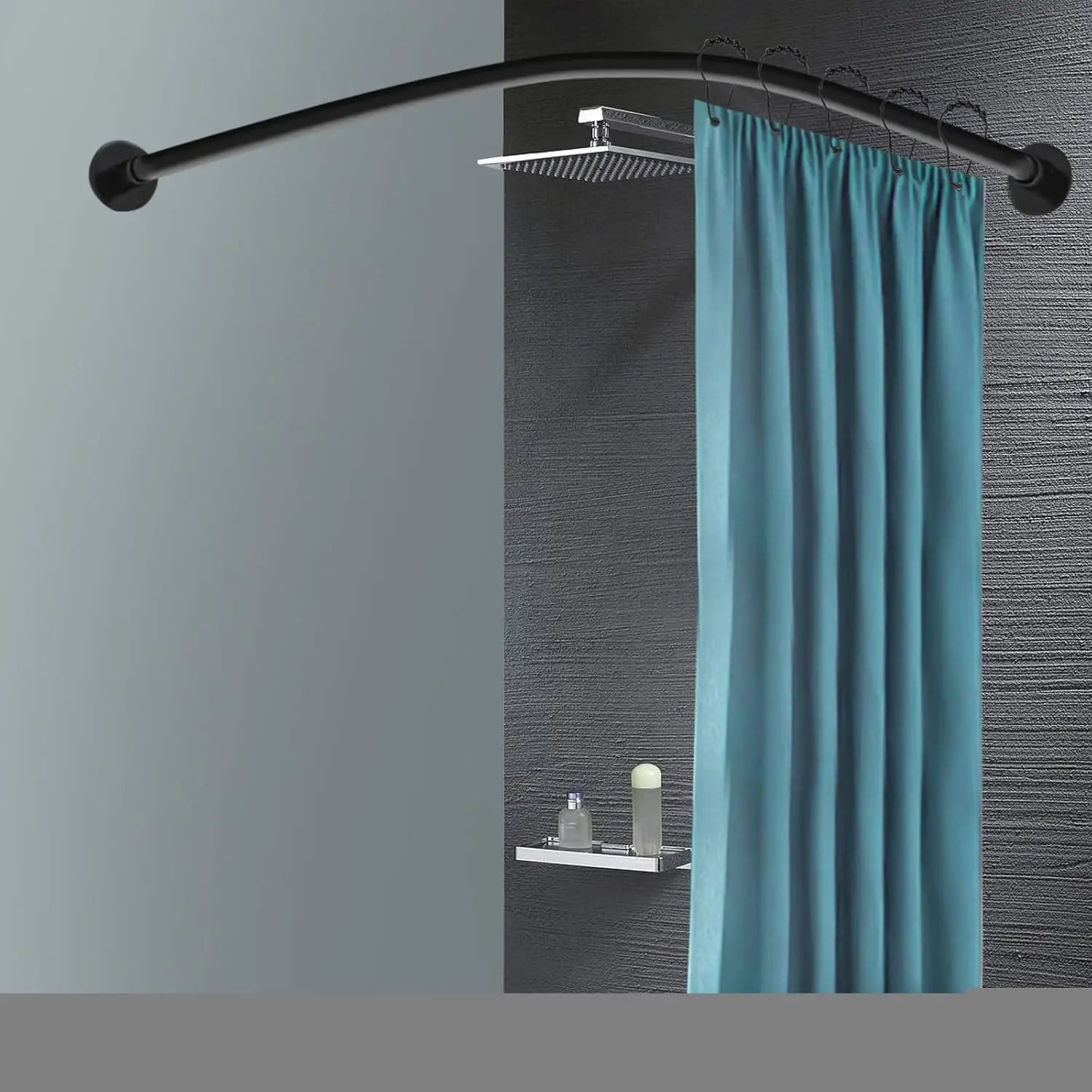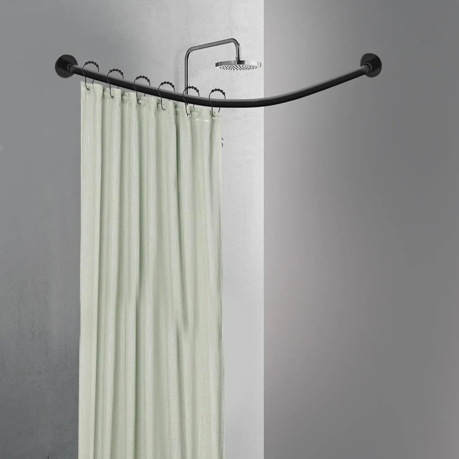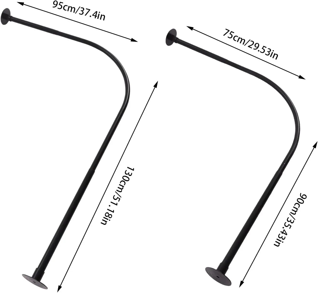 Black Shaped Shower Curtain Rod Adjustable 130cm Stainless Steel - Adjustable Height