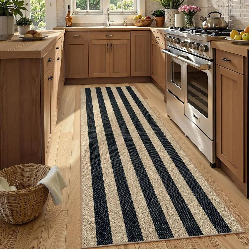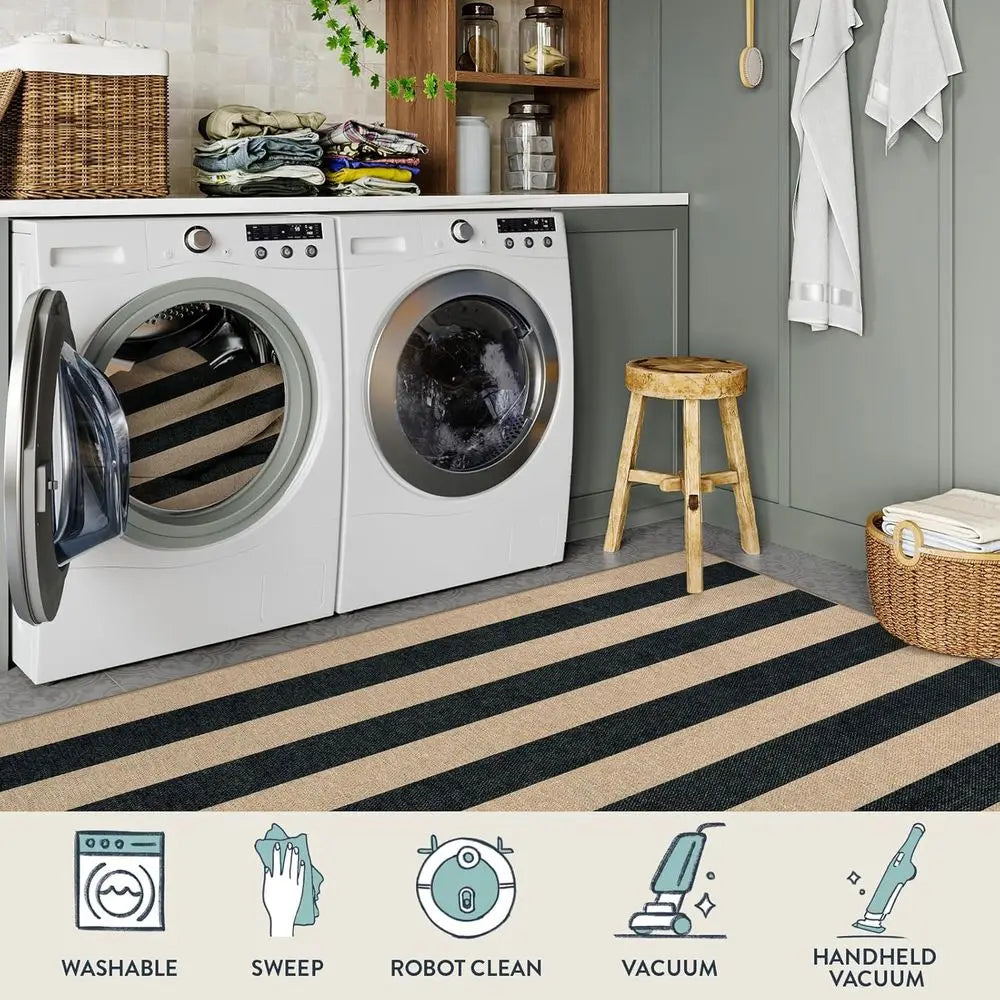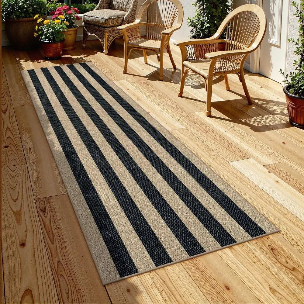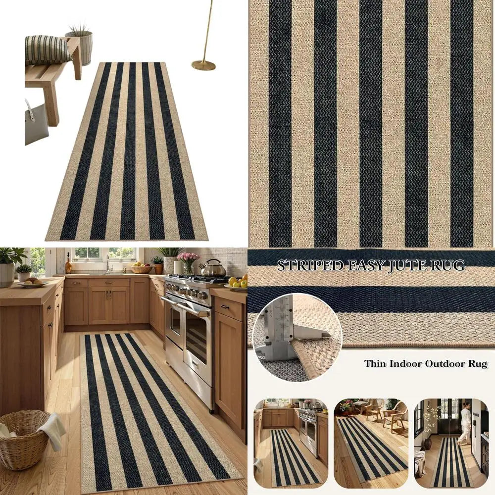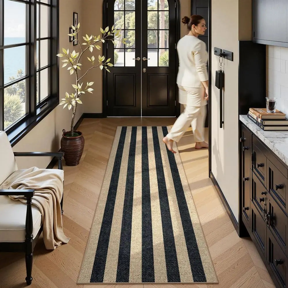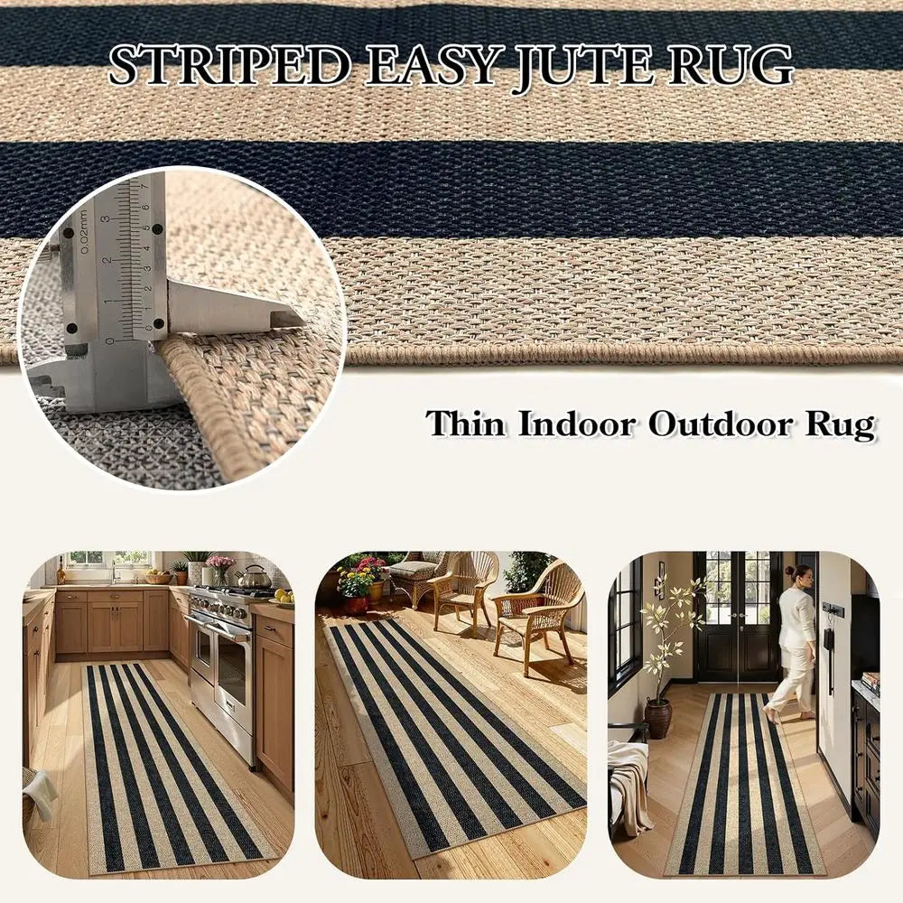 Black Non Slip Jute Runner 2x8 Feet Washable Rug