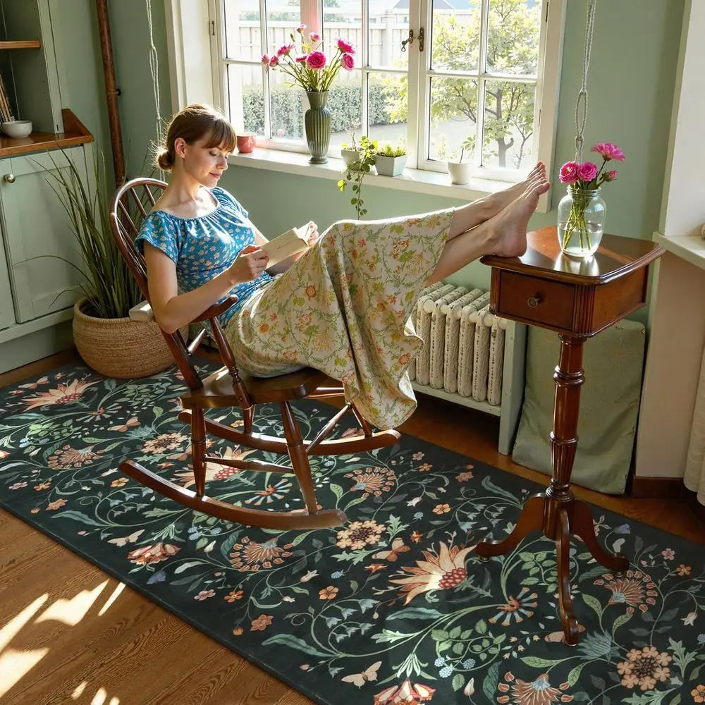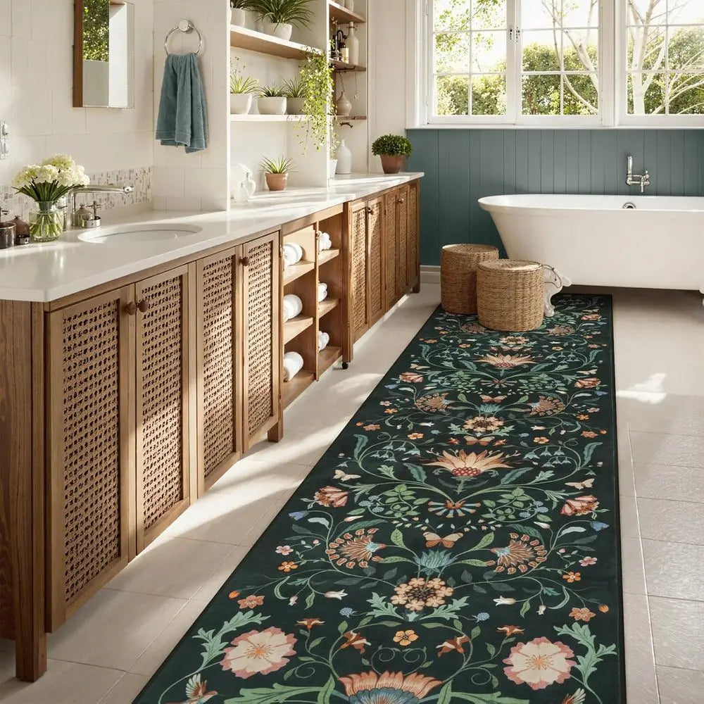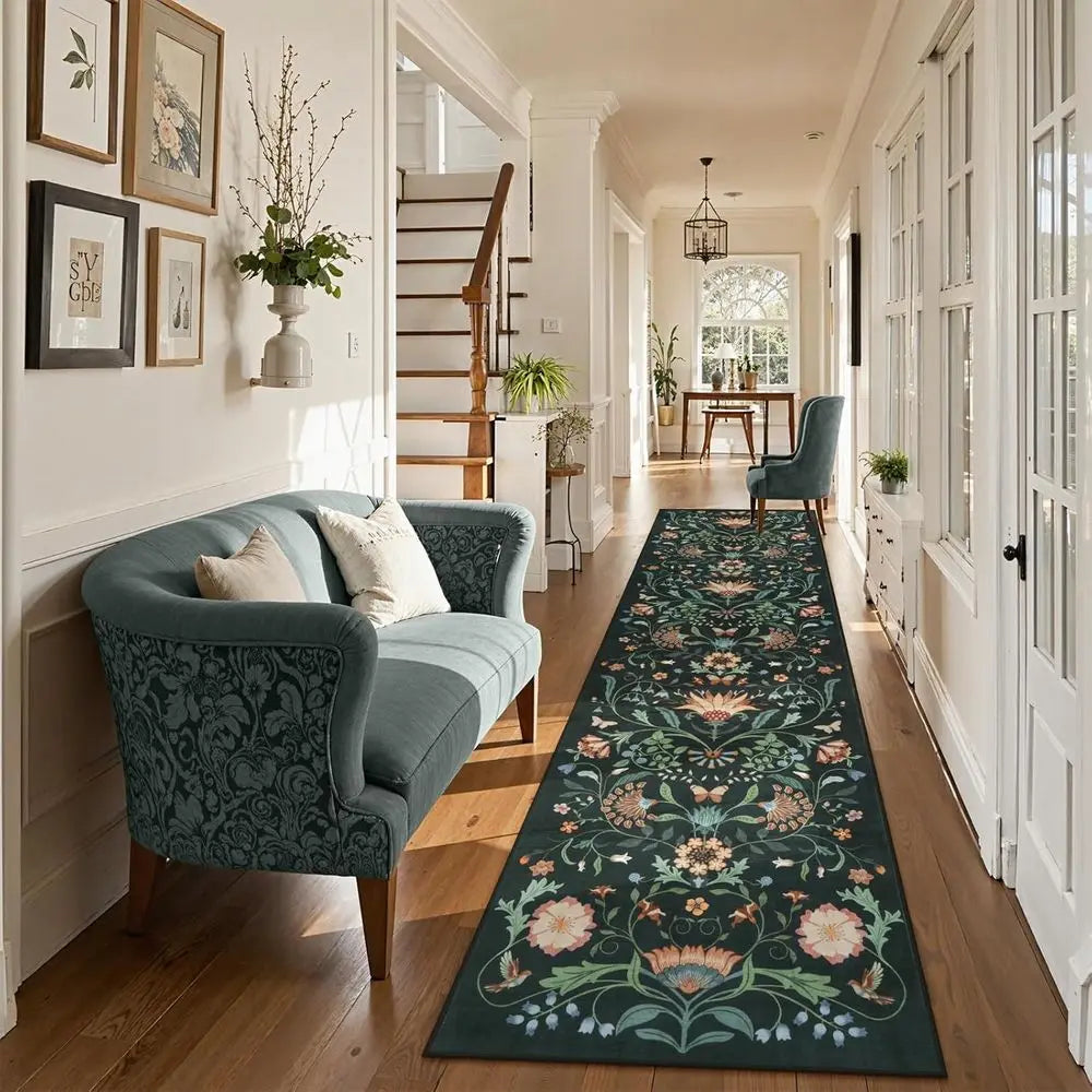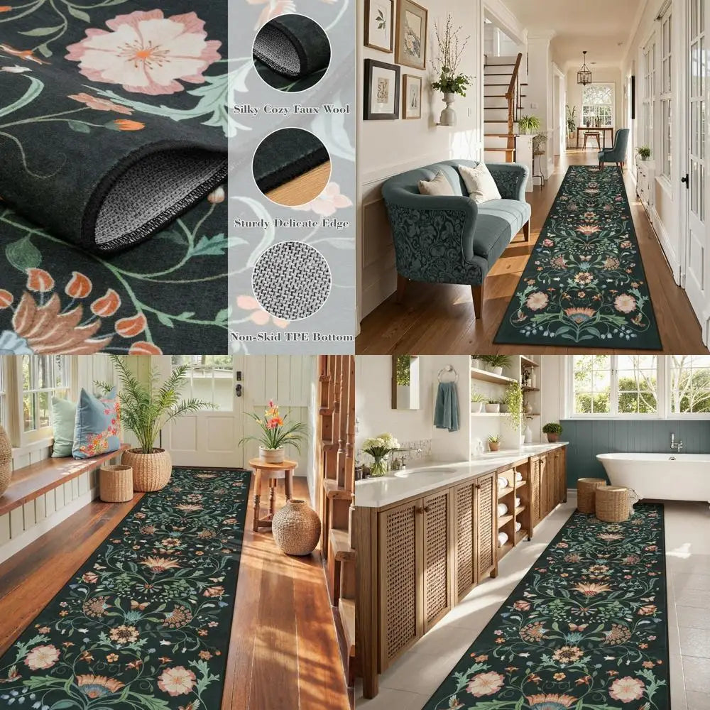 Black Vintage Boho Floral Rug Runner 6ft 10ft Washable