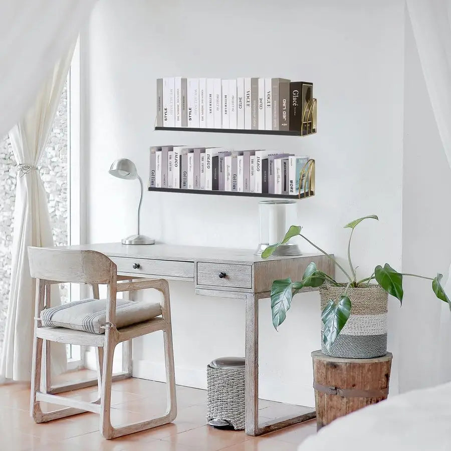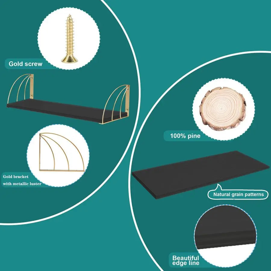 Bookshelf 87-Inch Black Gold Floating Shelves Pine Wood Large Inch