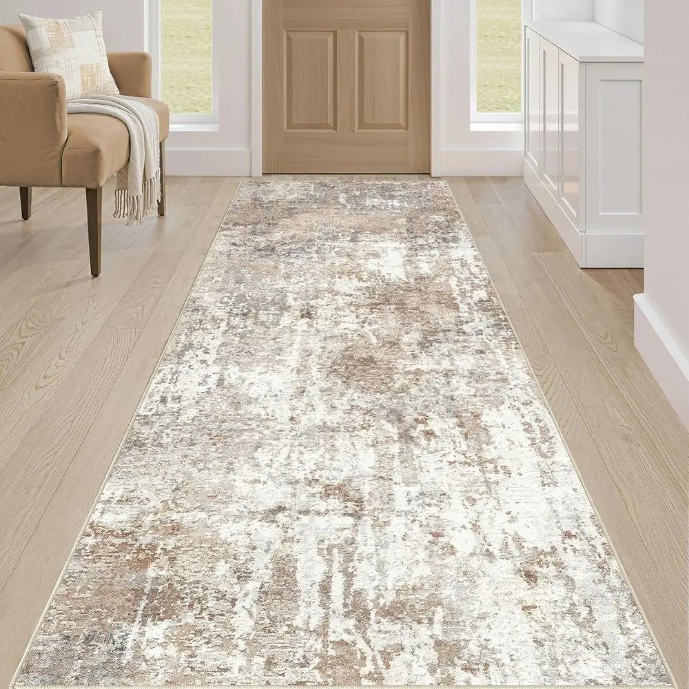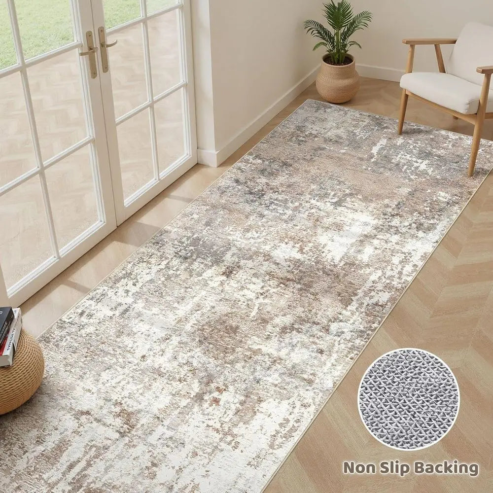 Brown 3x8 Runner Rug Modern Stain Resistant Non Slip