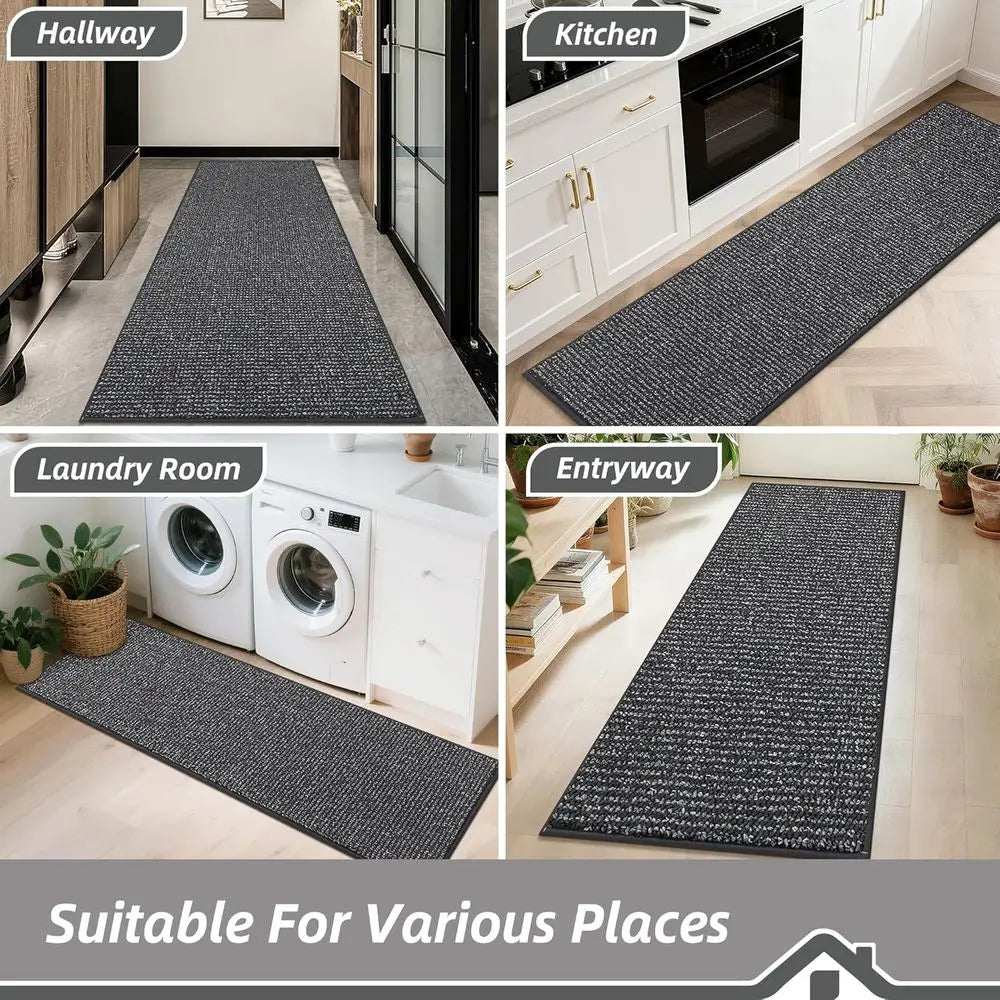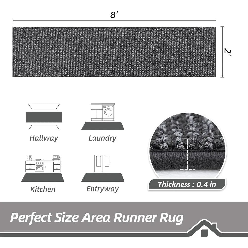 Charcoal 2x8 Non Slip Washable Runner Rug Stain Resistant