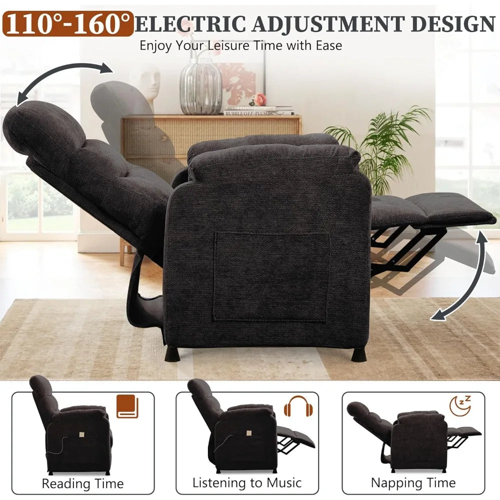 Chenille Fabric Power Recliner Chair for Living Room Reading - Adjustable Height