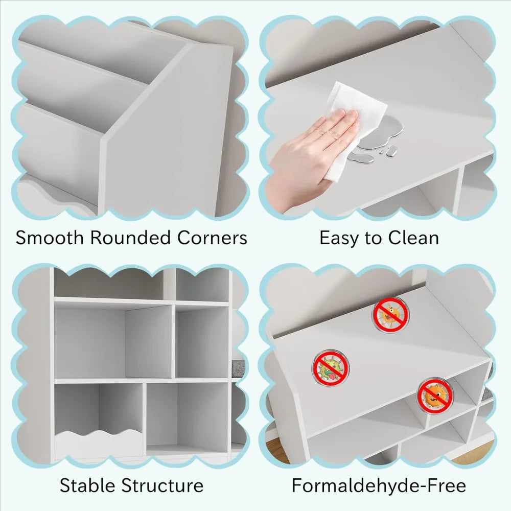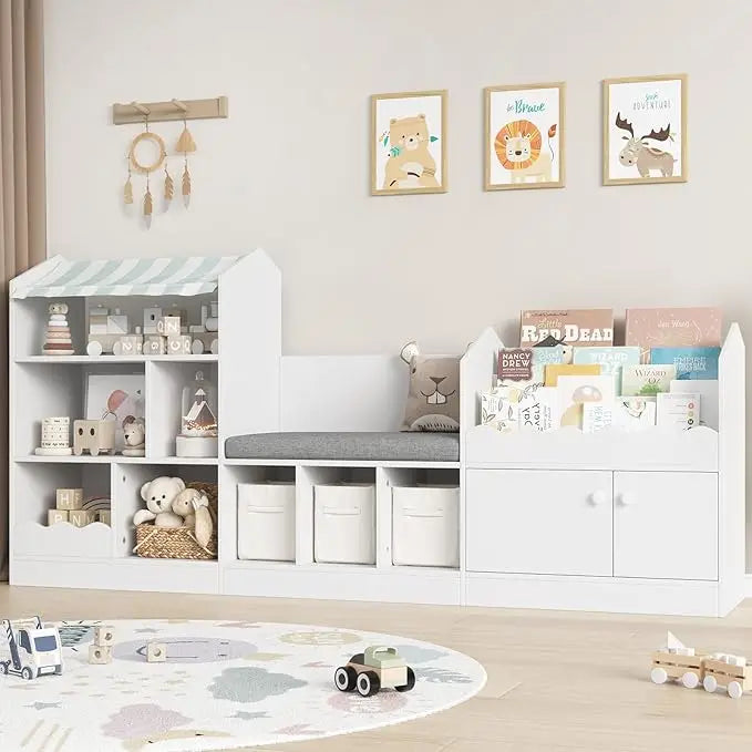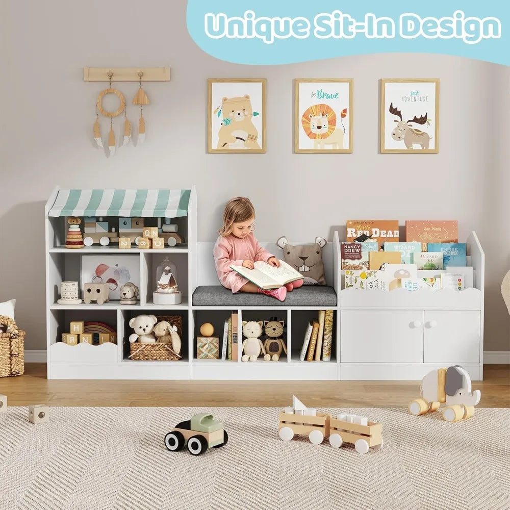 Childrens Bookshelf with Reading Nook Toy Organizer Bench And