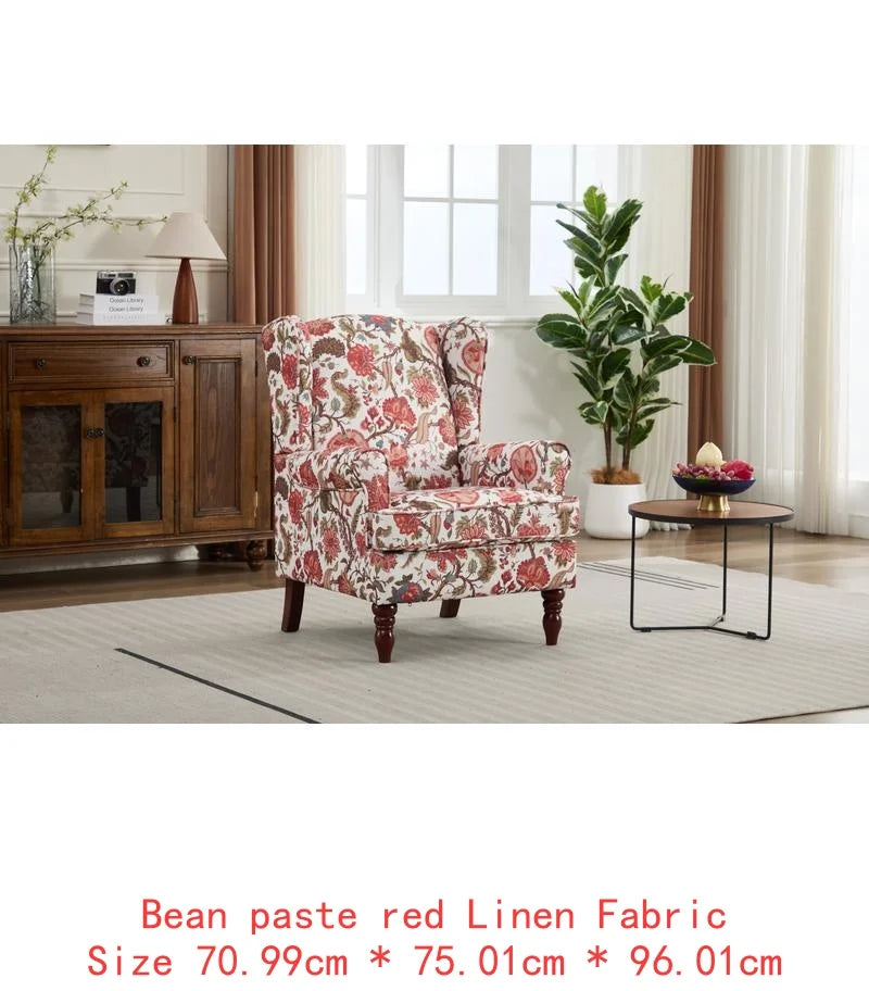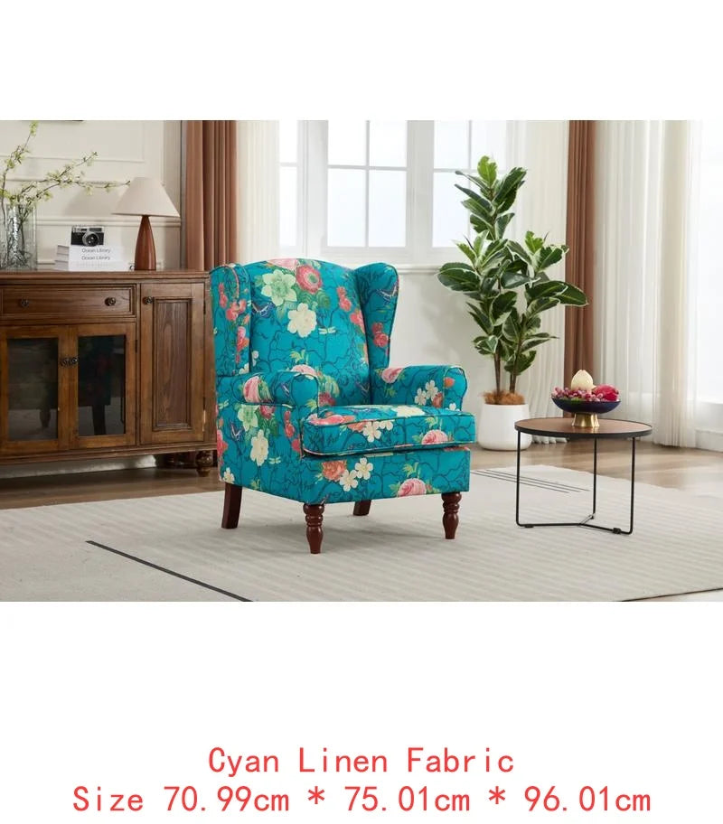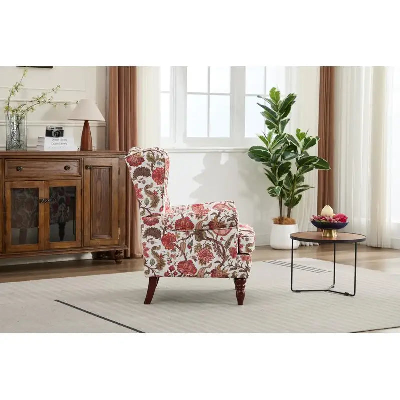 Comfy Floral Accent Armchair with Retro Wood Legs Upholstered