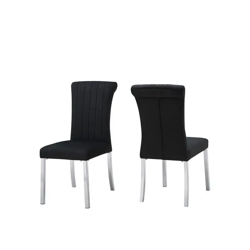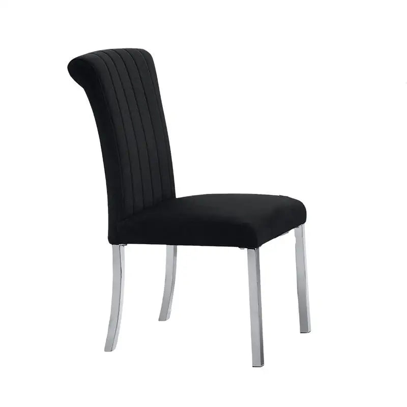 Contemporary Channel Tufted Side Chair with Black and Silver