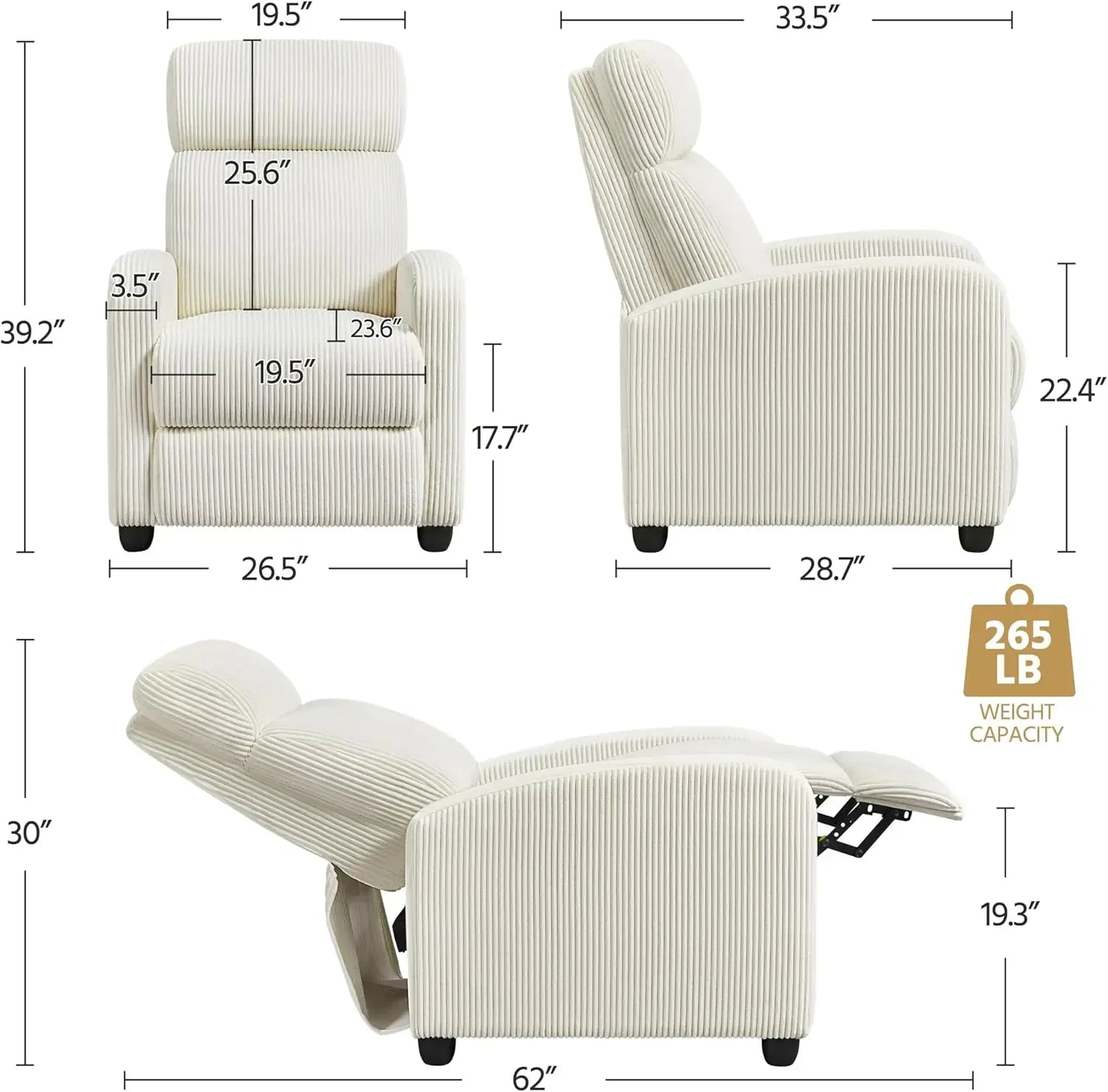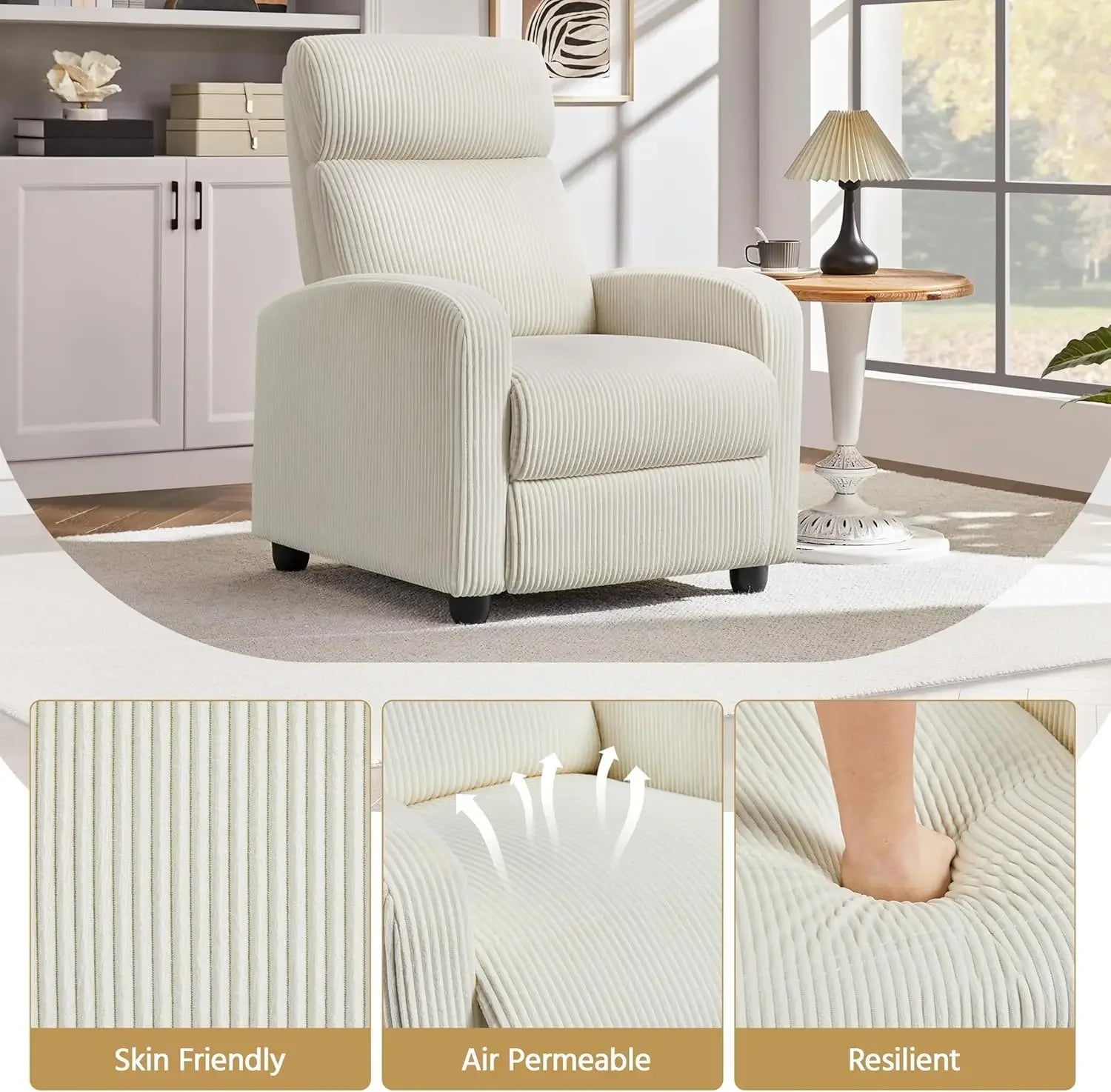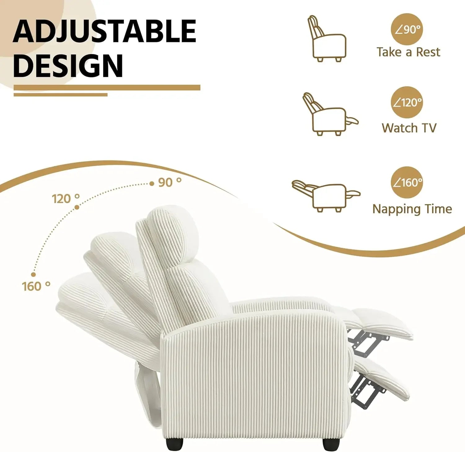 Corduroy Recliner Chair Single Sofa Home Theater Seating Adjustable - Adjustable Height