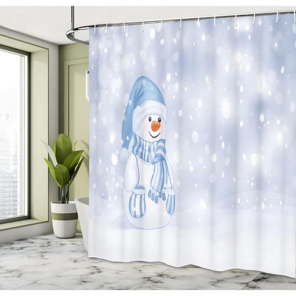 Cozy Snowman Cartoon Winter Shower Curtain Festive Merry Christmas