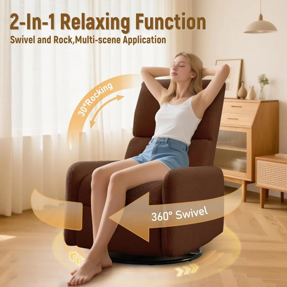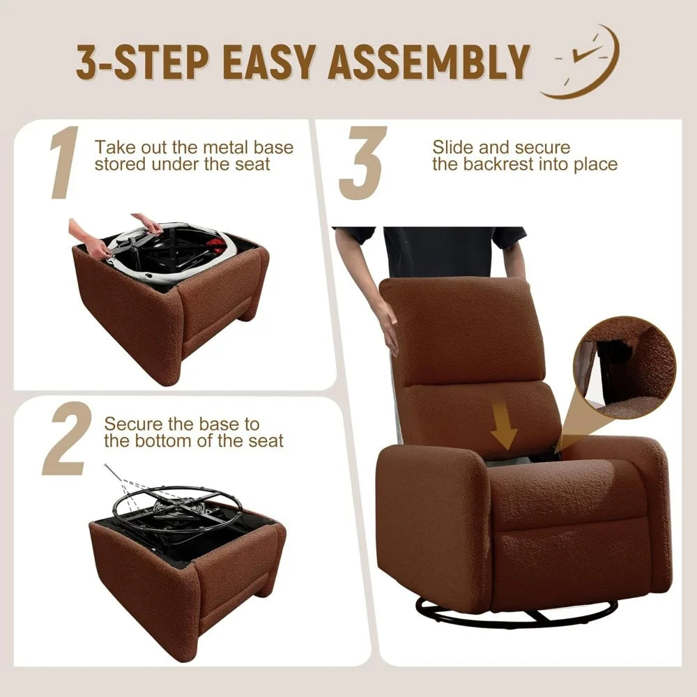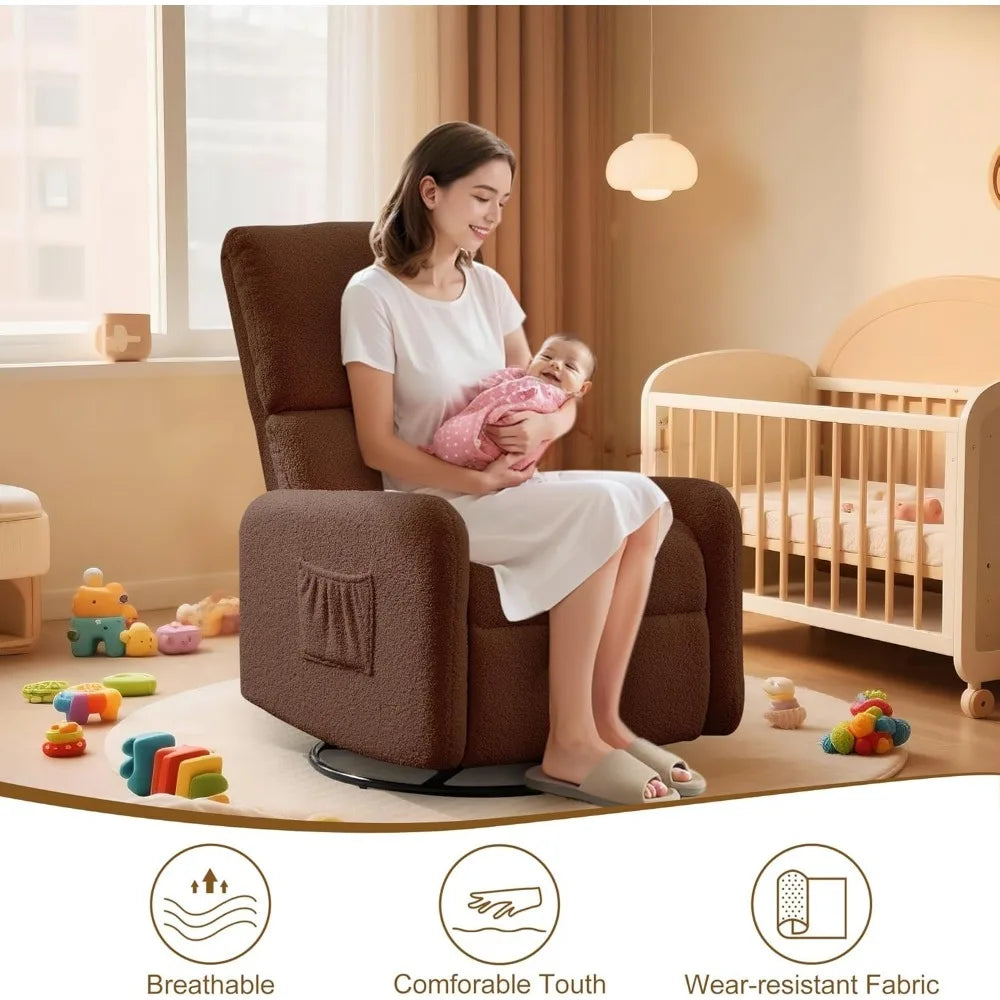 Cushioned Swivel Glider Rocking Chair for Nursery with Side