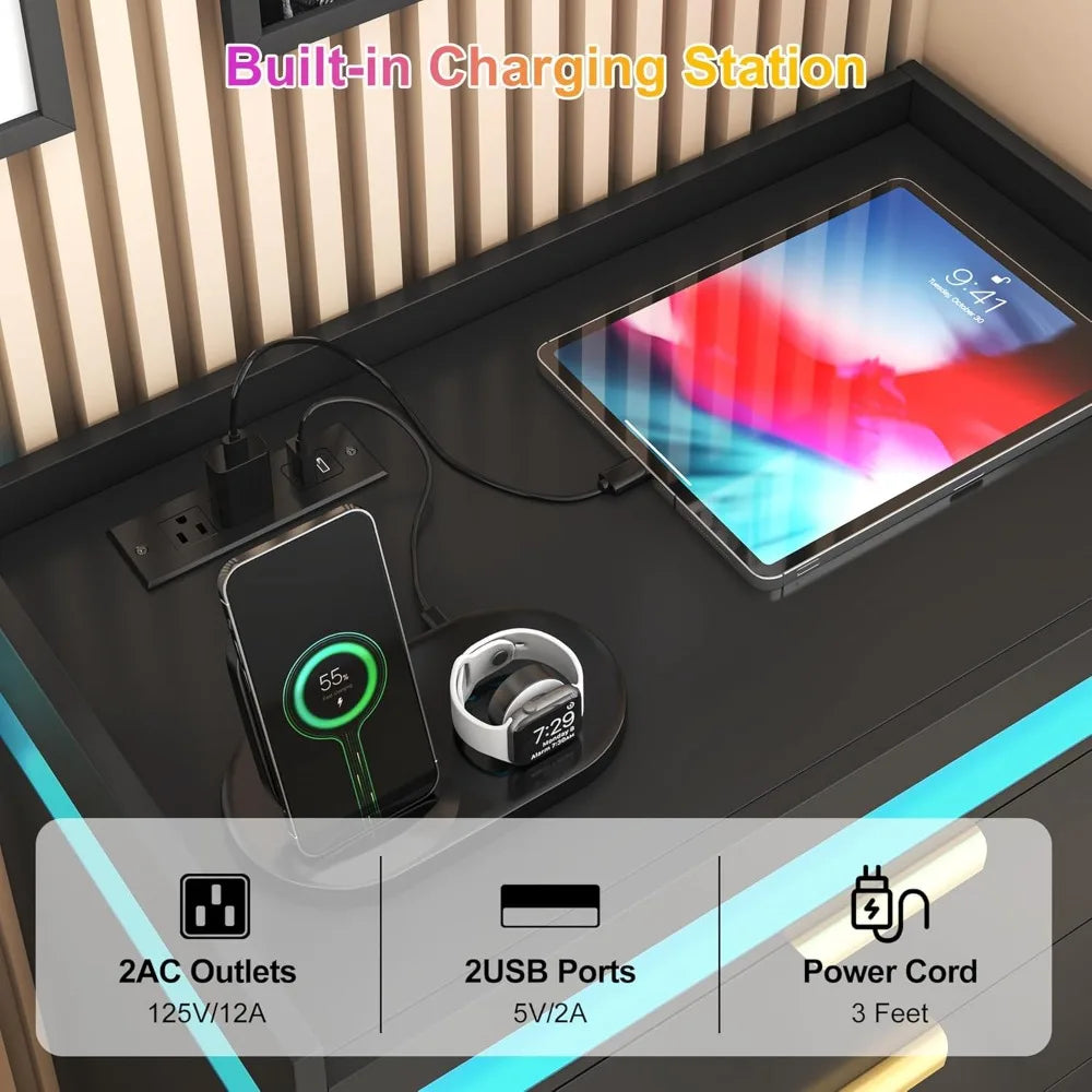 Dresser For Bedroom Black with Led Lights Wood Drawer
