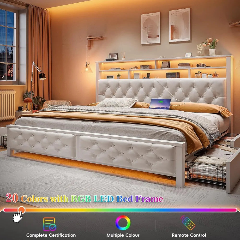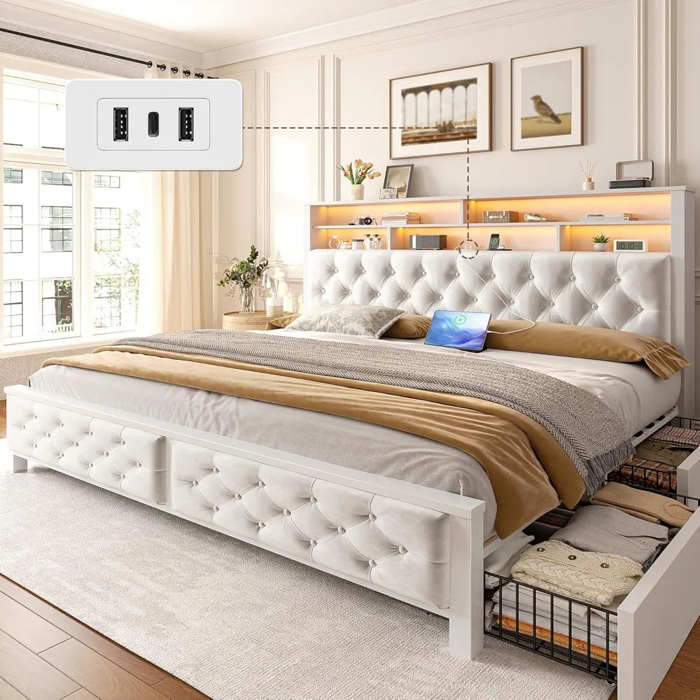 EnHomee King Size Bed Frame with Drawers and Headboard