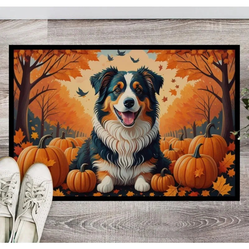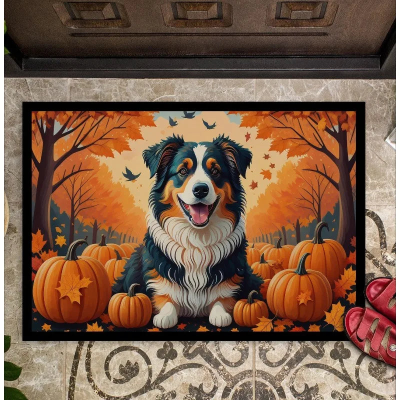 Fall Australian Shepherd Terrier Doormat Non Slip Washable Low (27.00 0.15 18in)