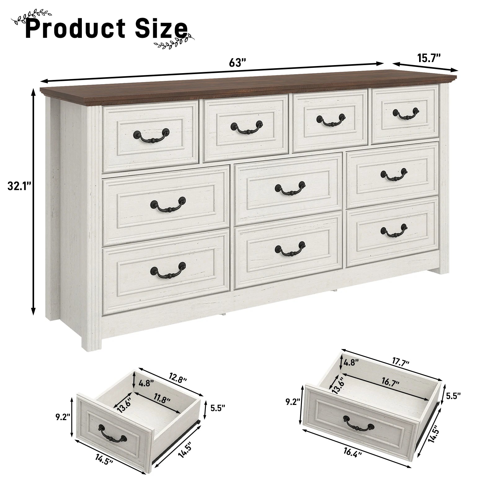 Farmhouse Drawer Dresser for Bedroom Wood Chest Drawers With