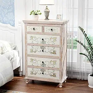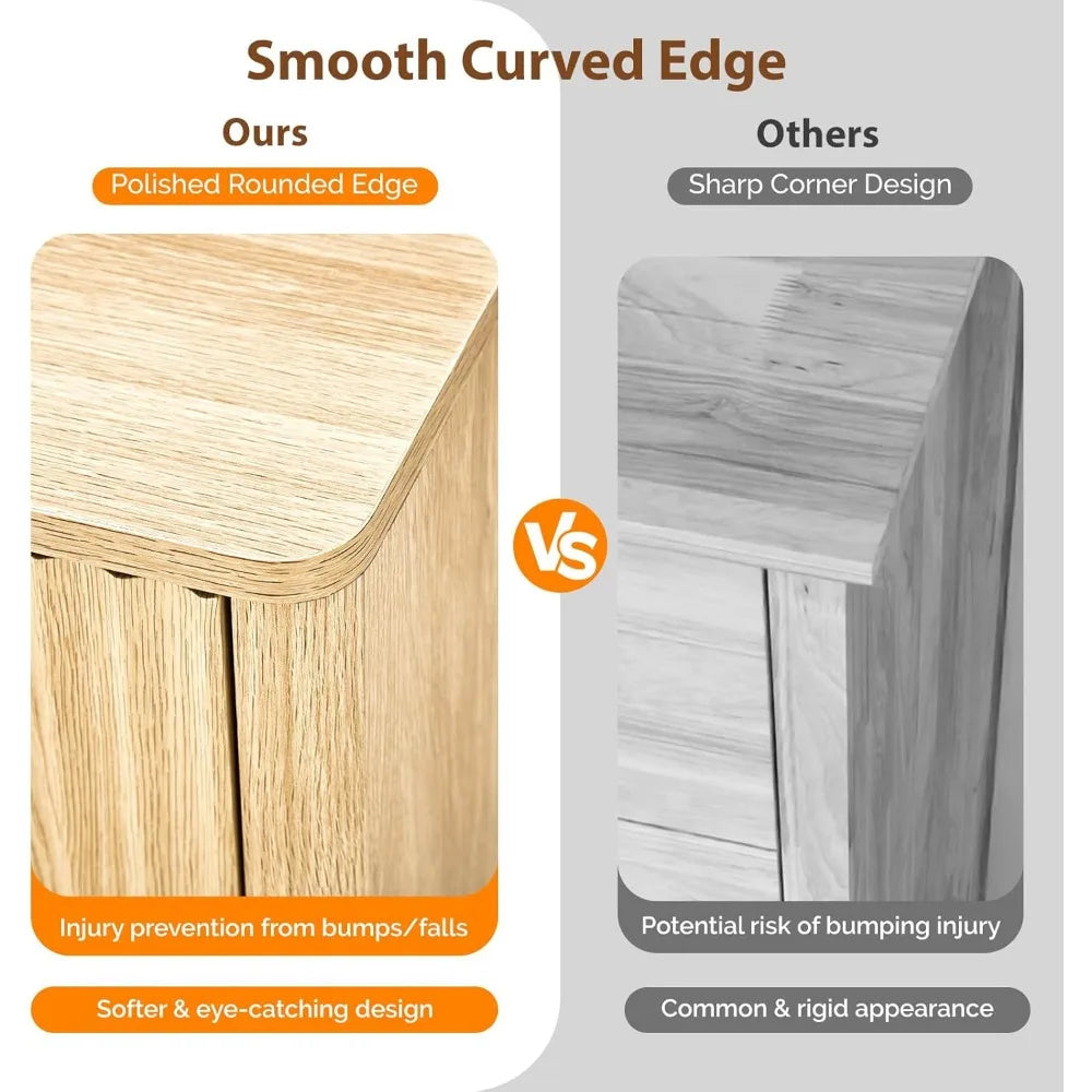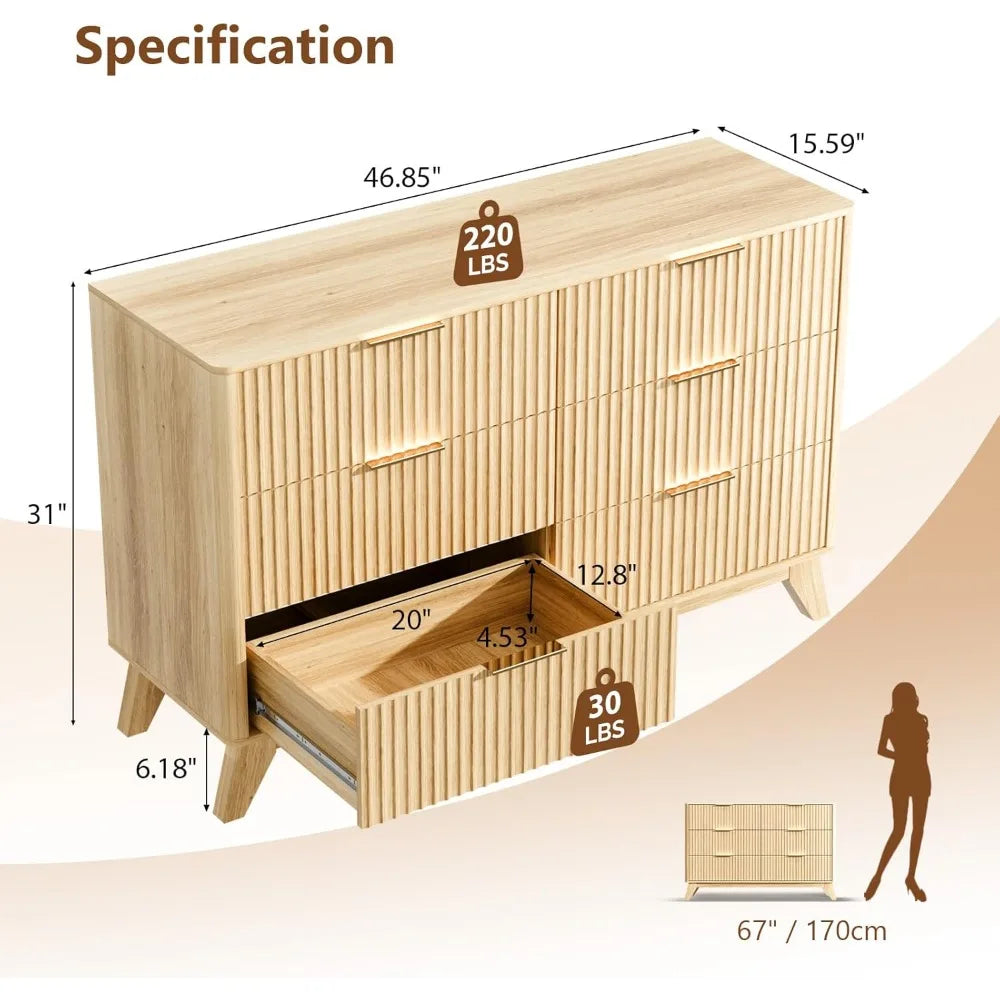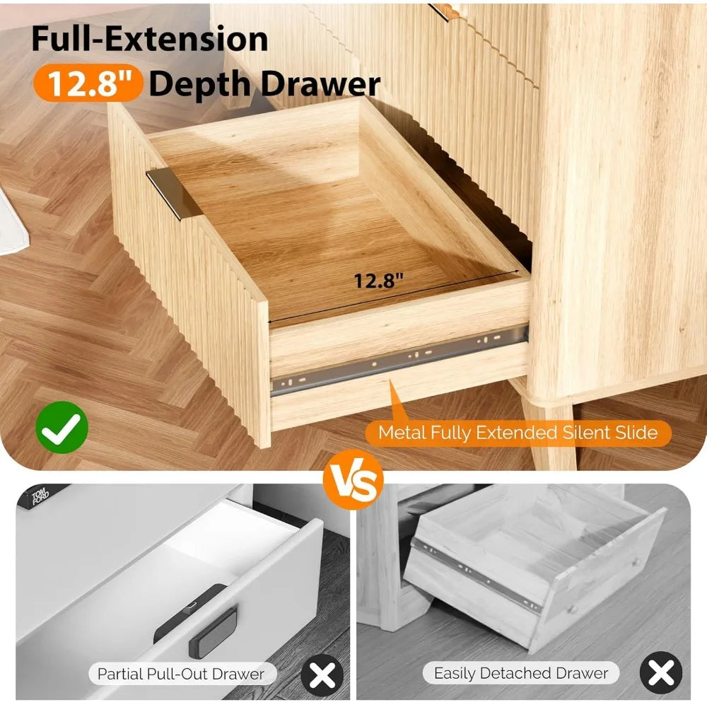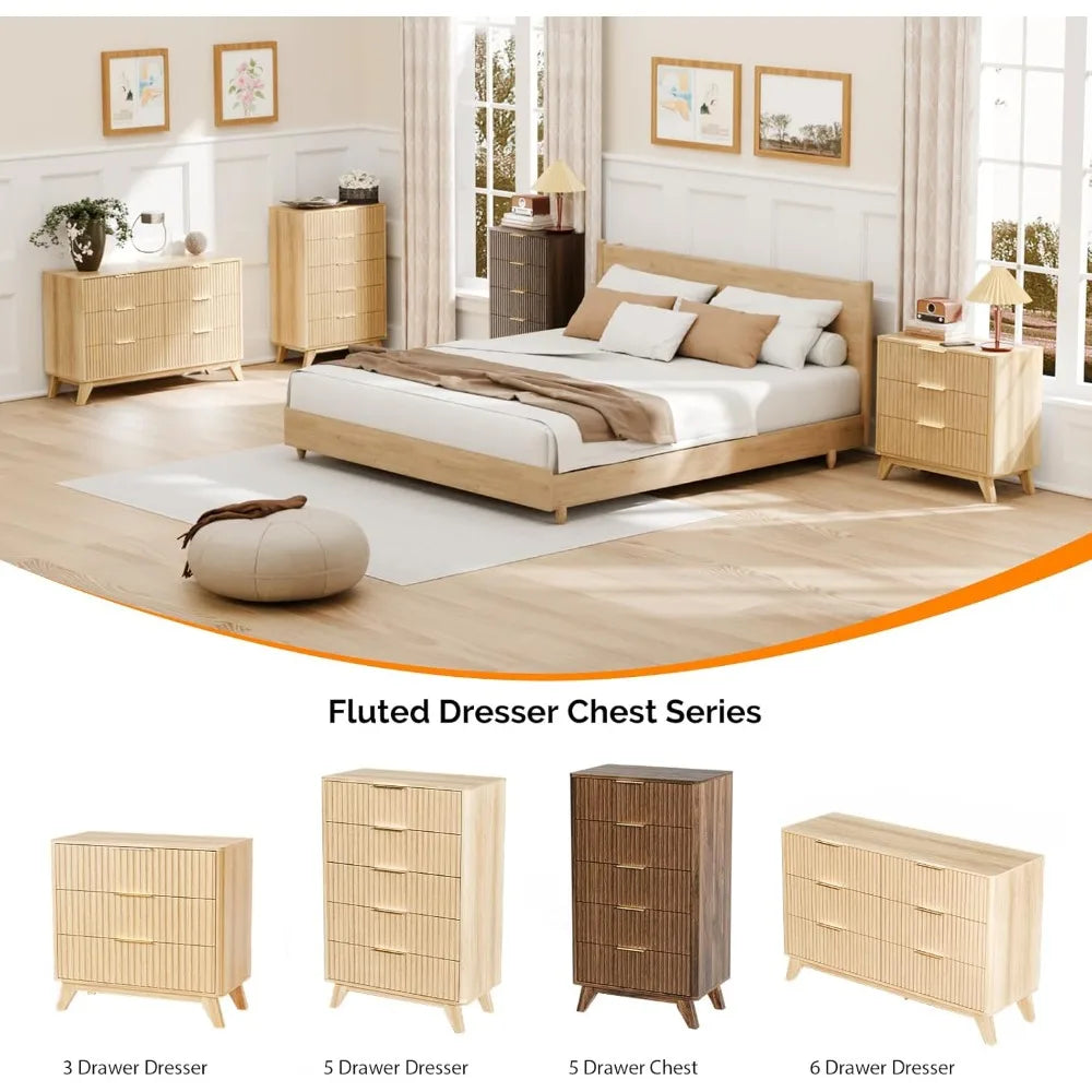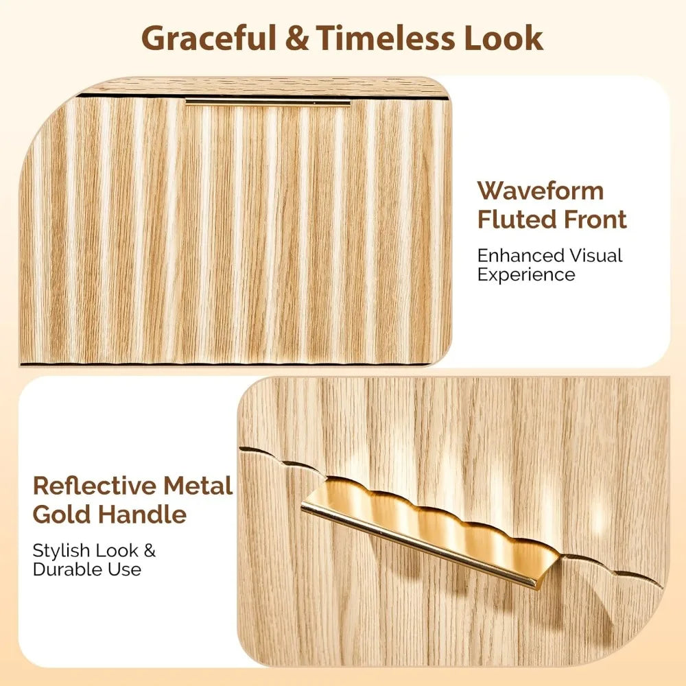 Fluted Dresser Drawer Wood for Bedroom with Rounded Edges