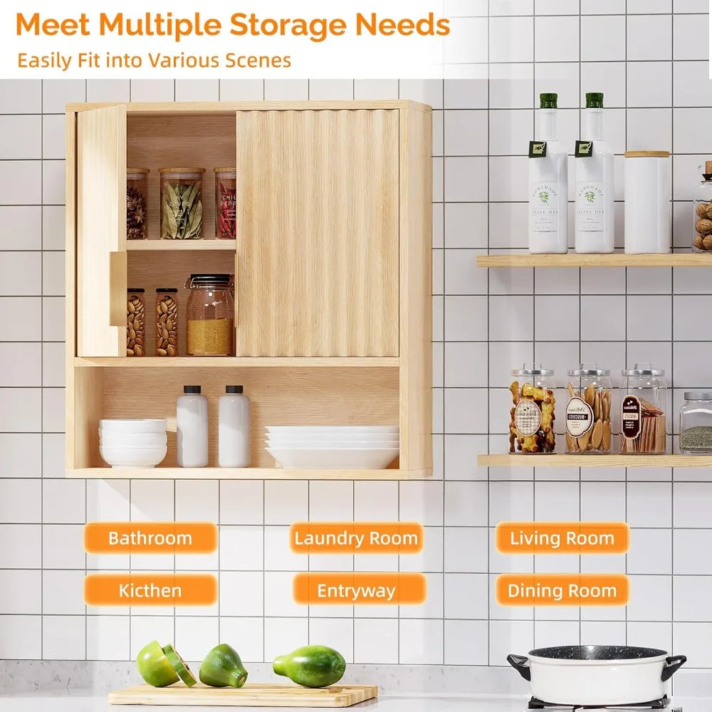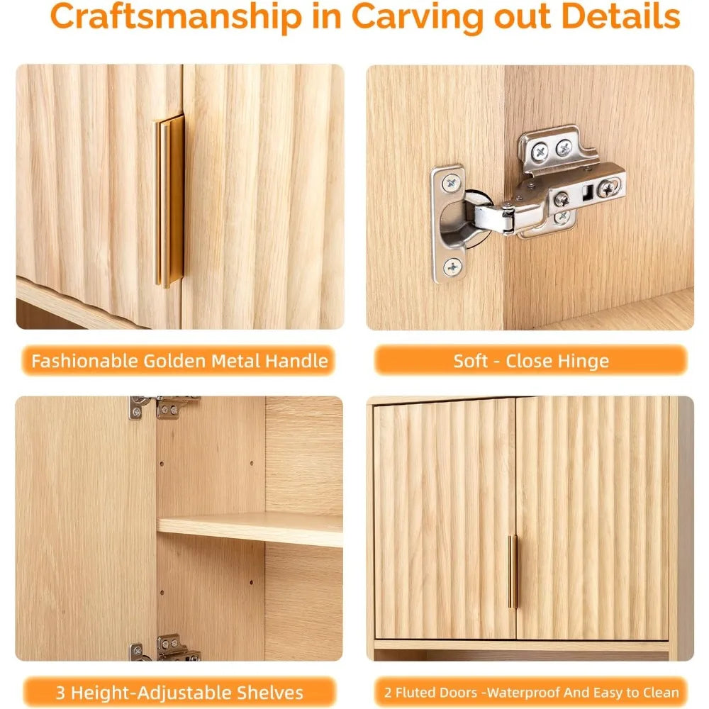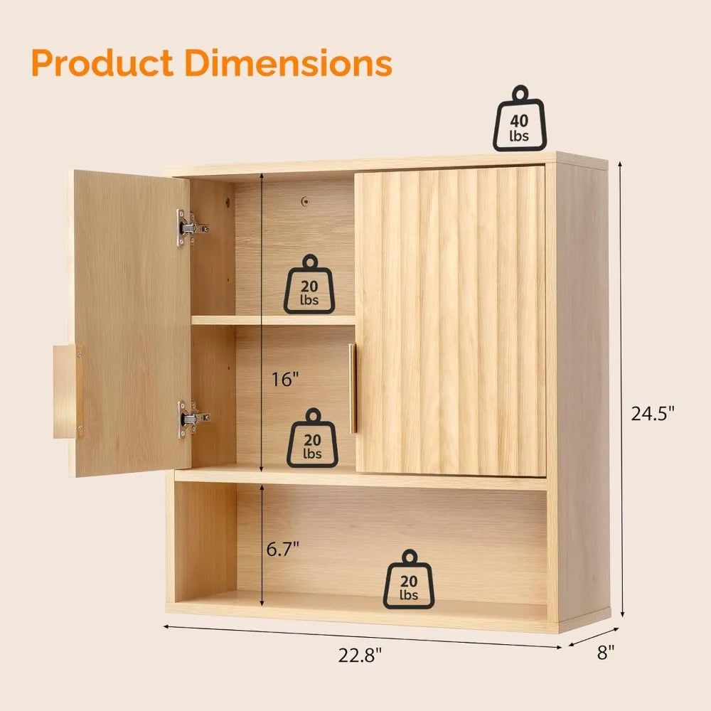 Fluted Modern Medicine Cabinet Bathroom Wall Over Toilet Storage