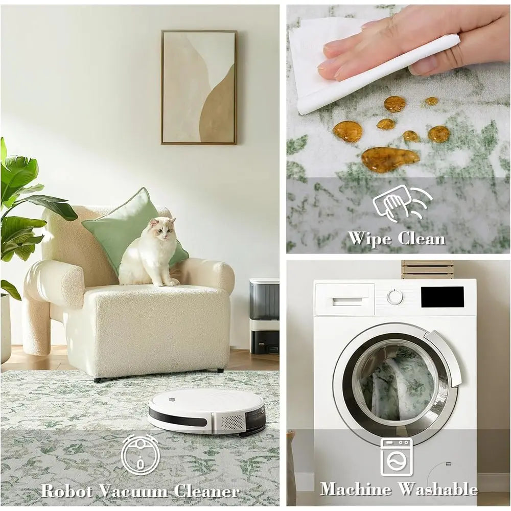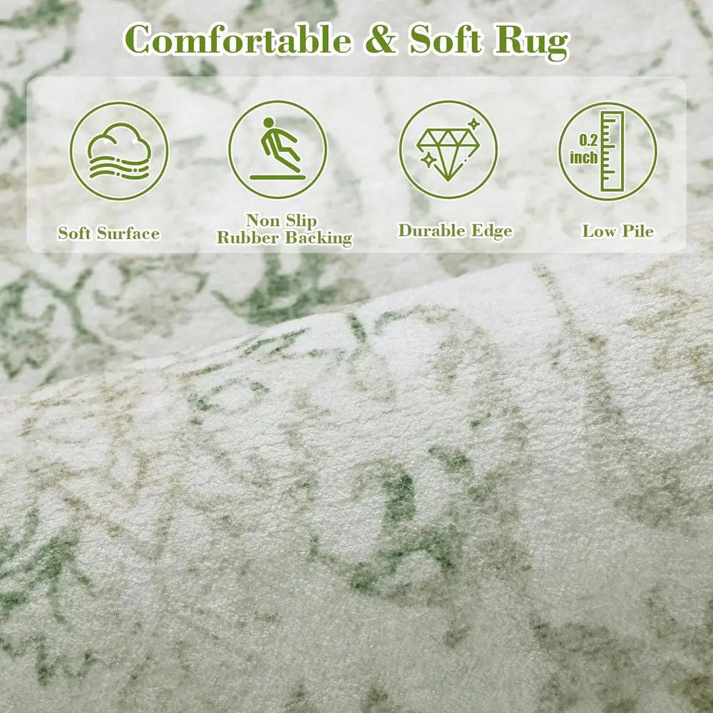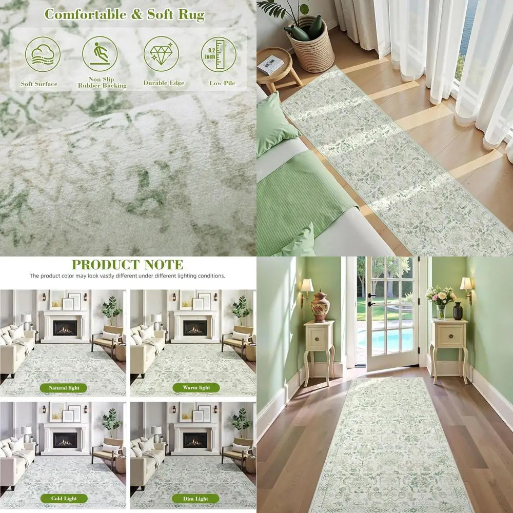 Green 36x144 Boho Runner Rug Low Pile Washable Non