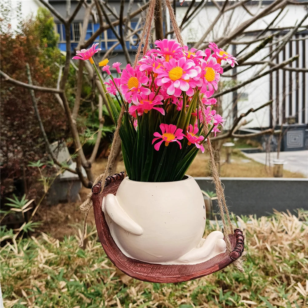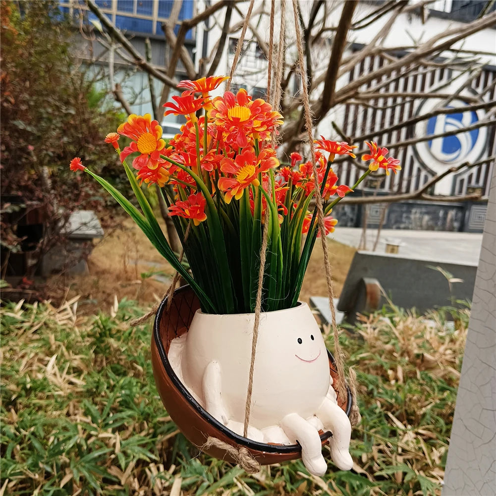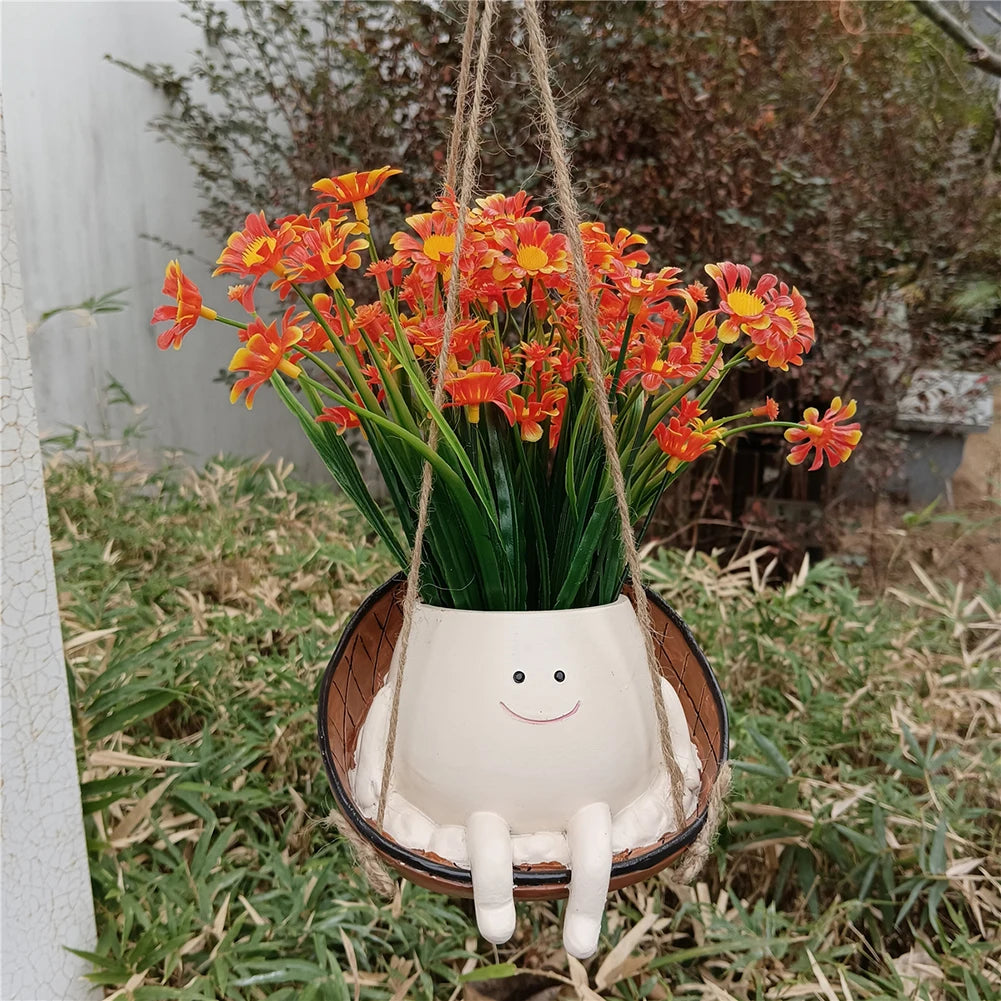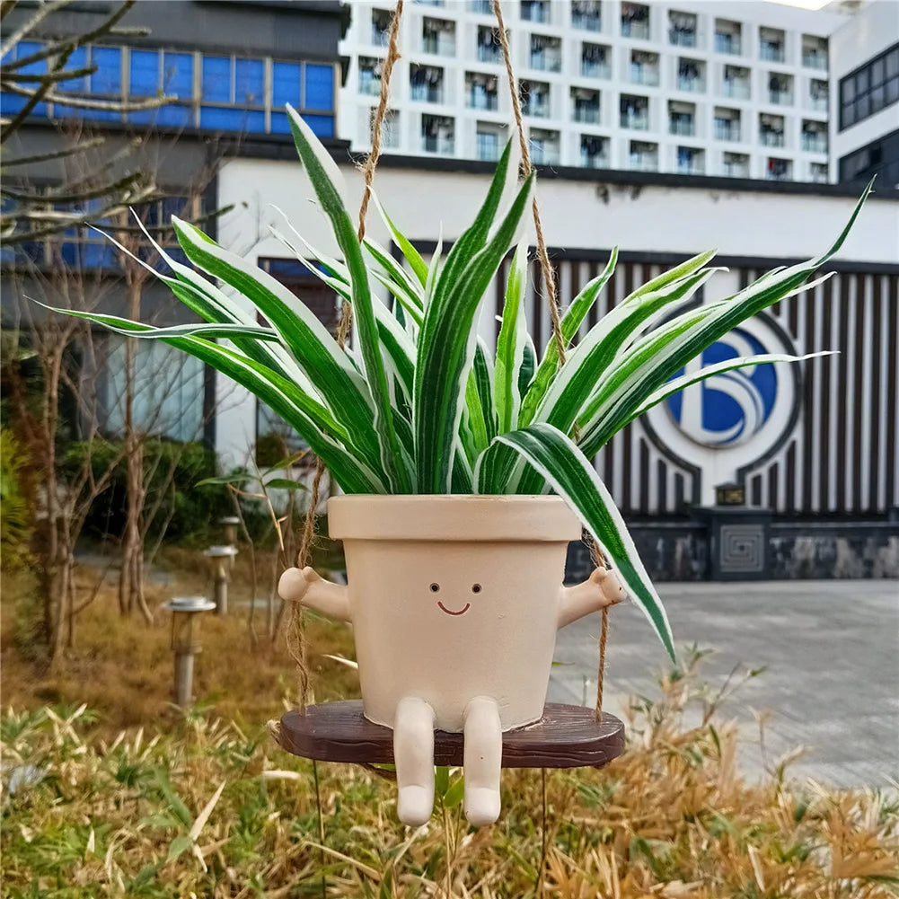 Hanging Hammock Planter Resin Swing Smile Face Creative Cute