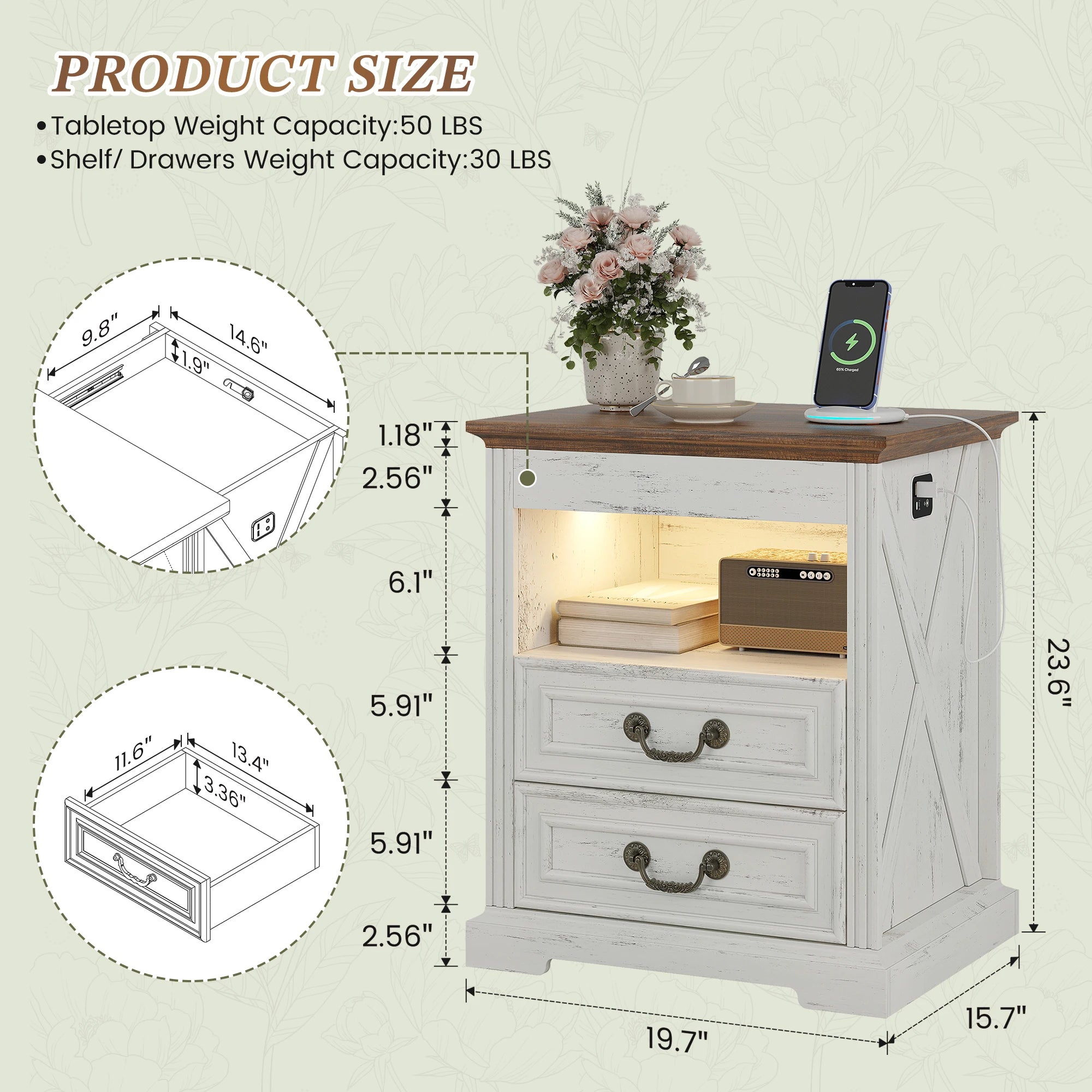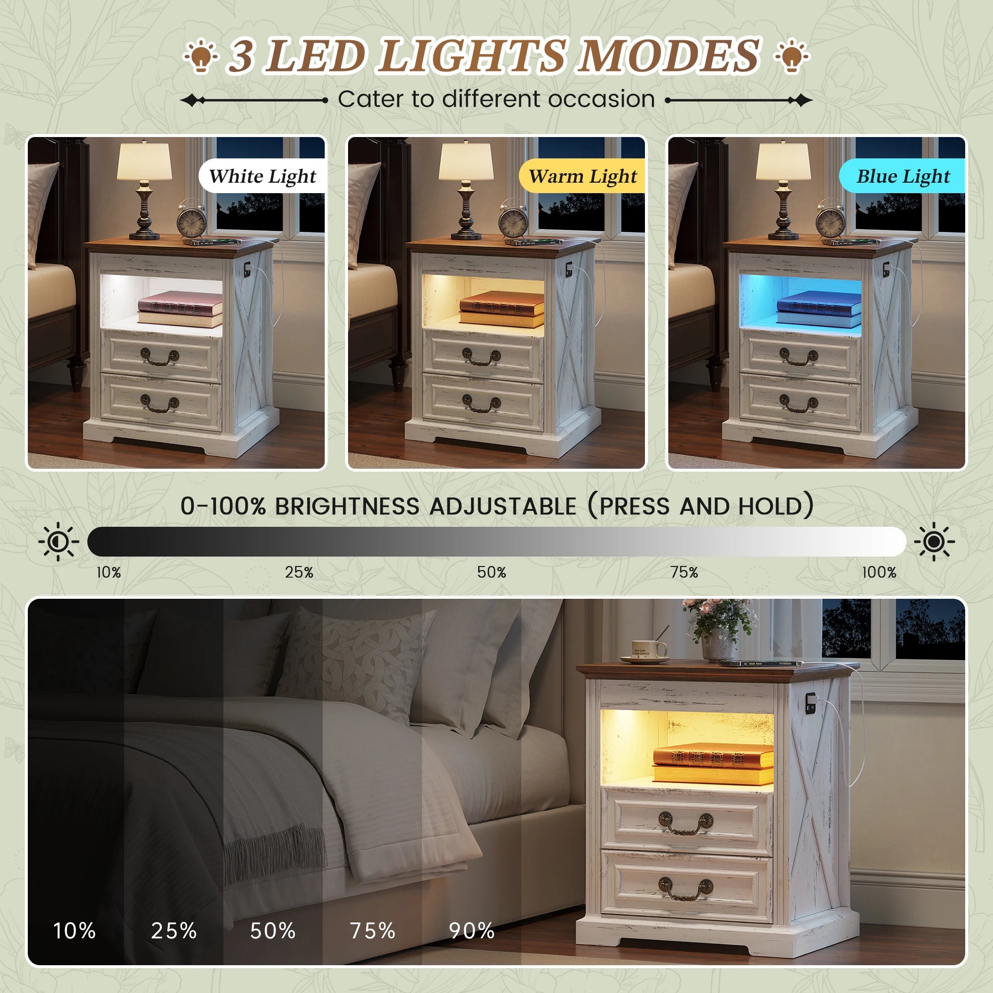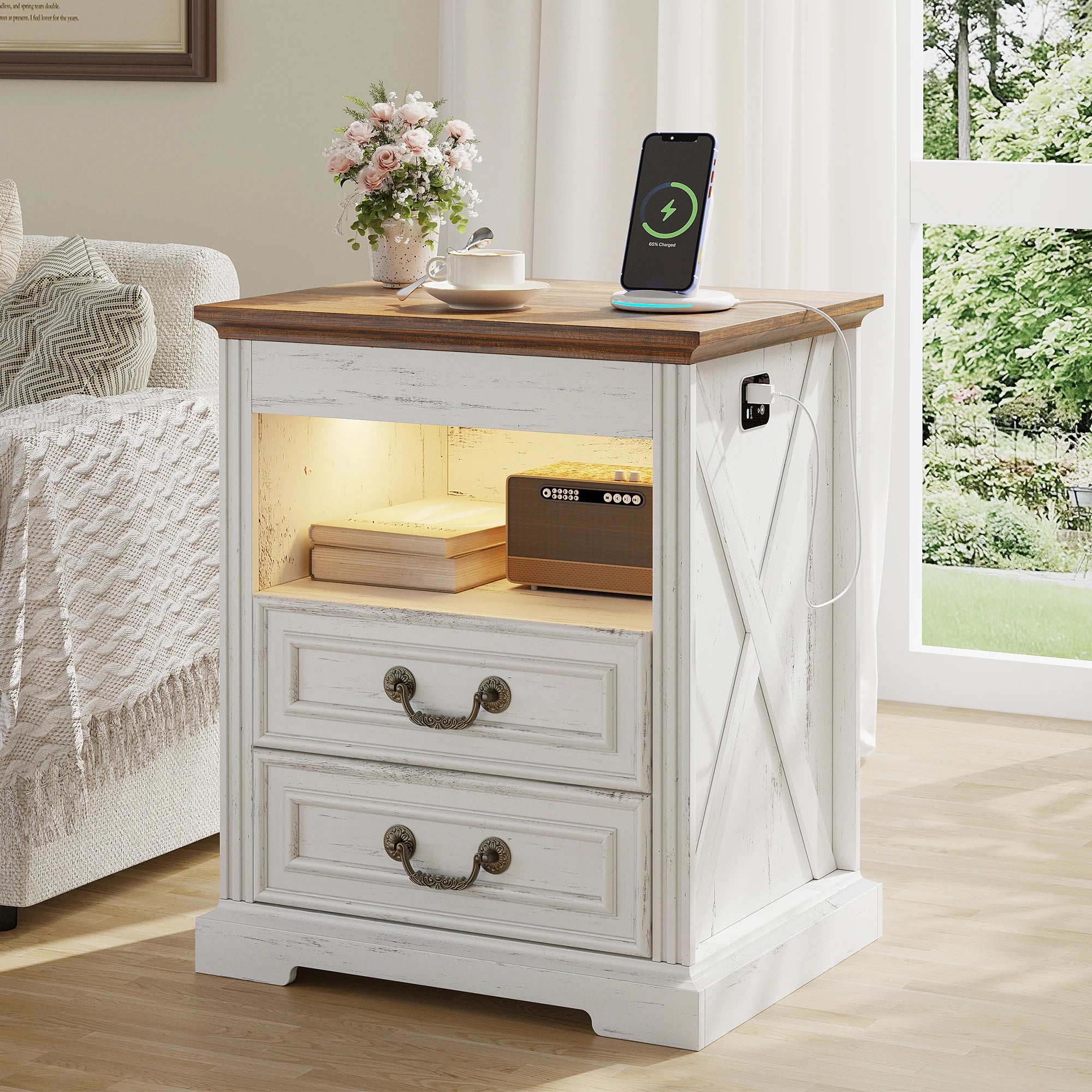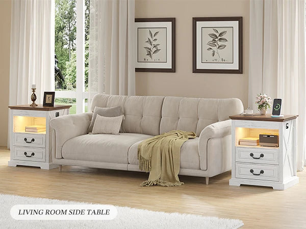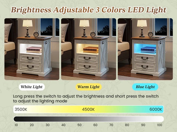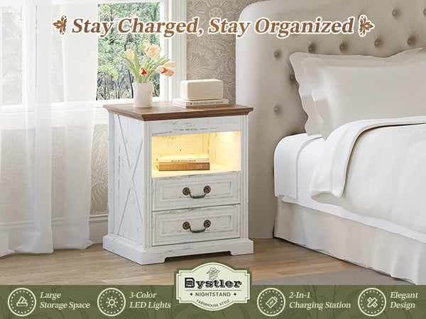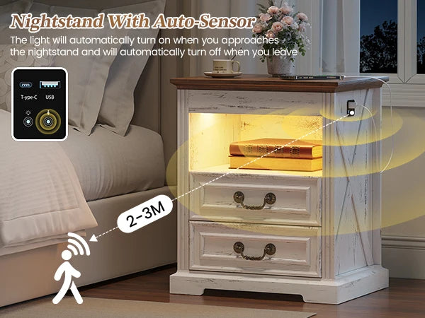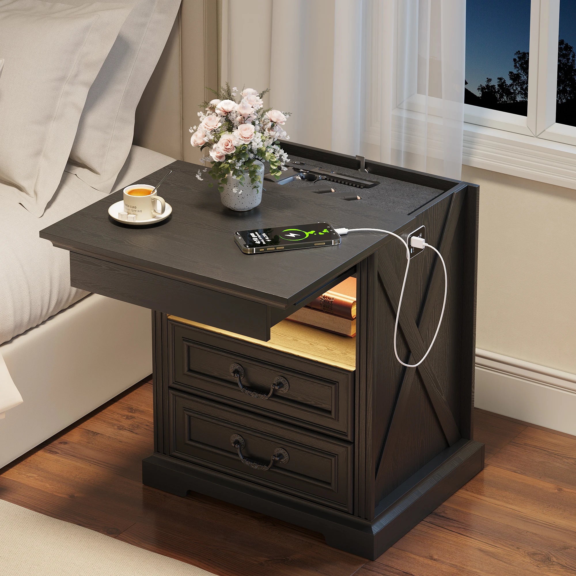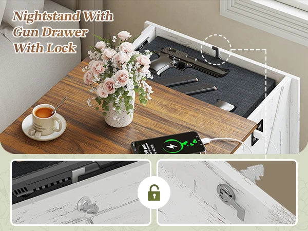 Jdpag Nightstand with Gun Drawer Bedside Table Charging Station
