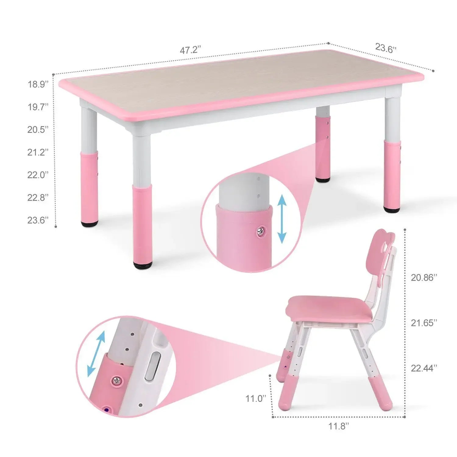 Kids Table and Chairs Set Height Adjustable Toddler Chair - Adjustable Height
