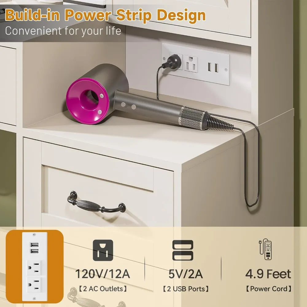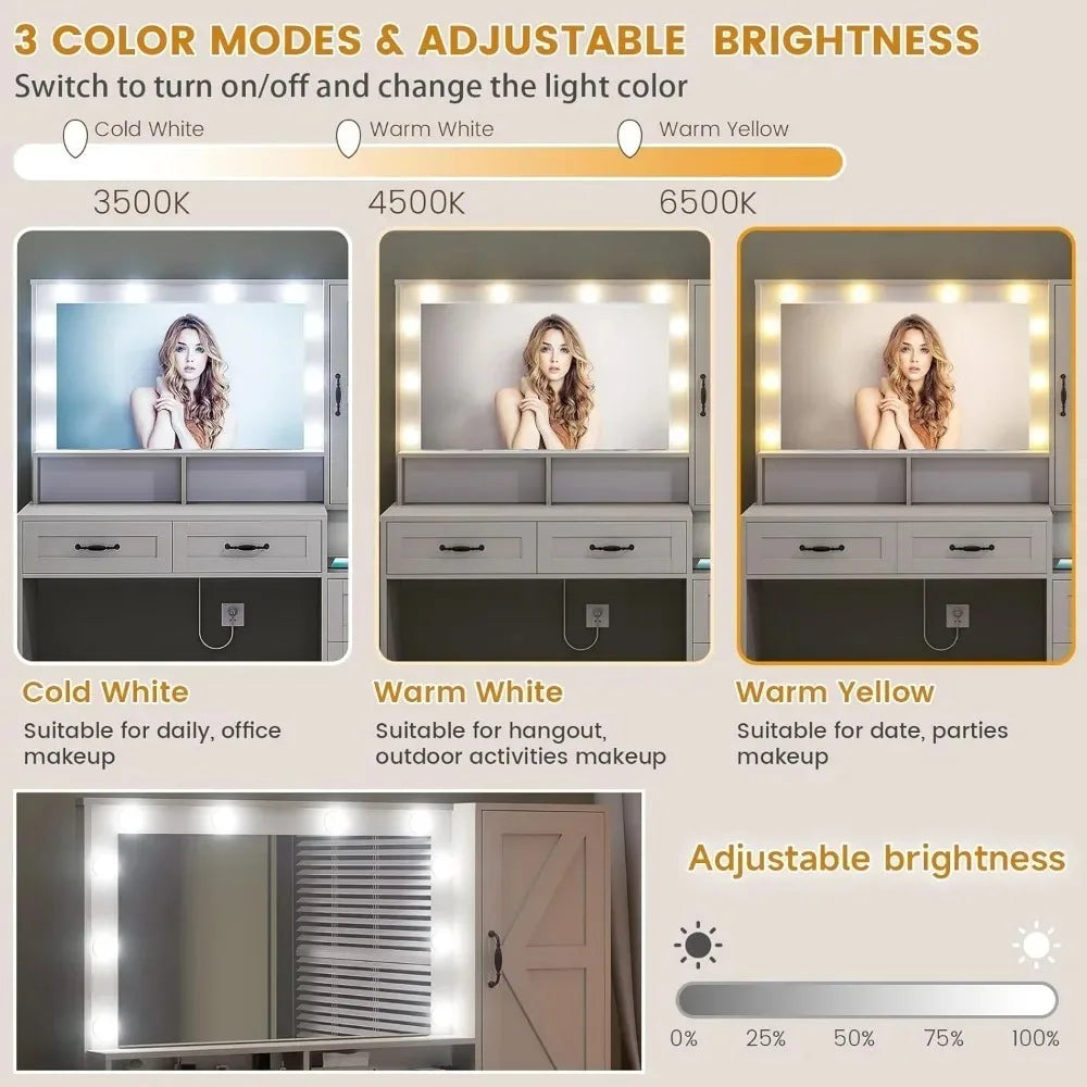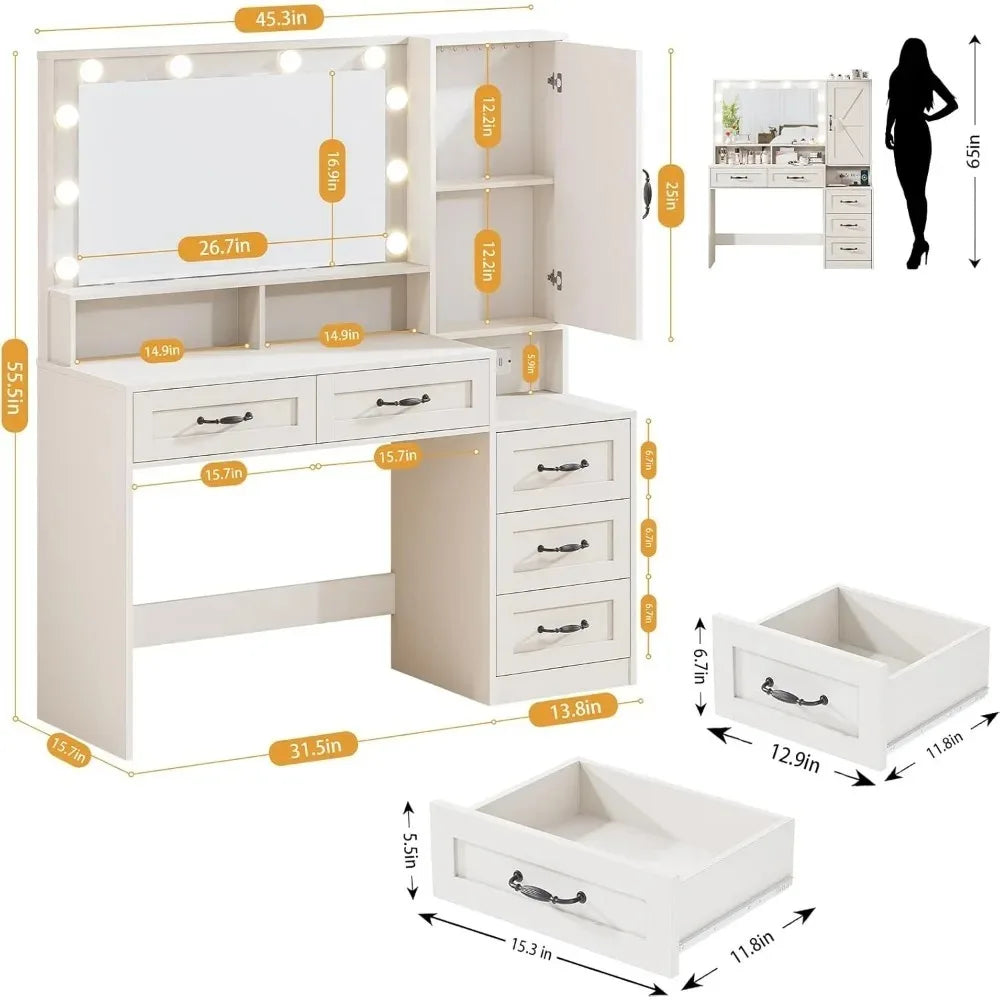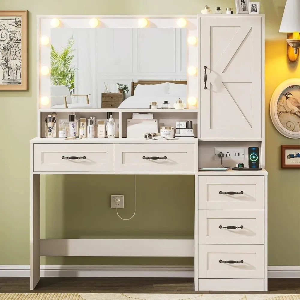 Large 3-Inch Farmhouse Vanity Desk with Mirror Inch Makeup Table