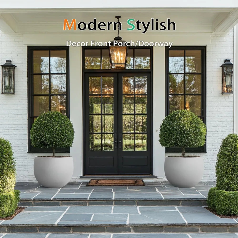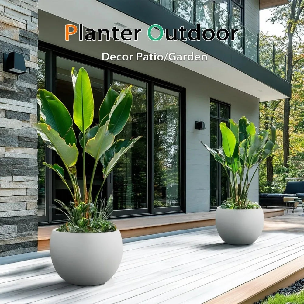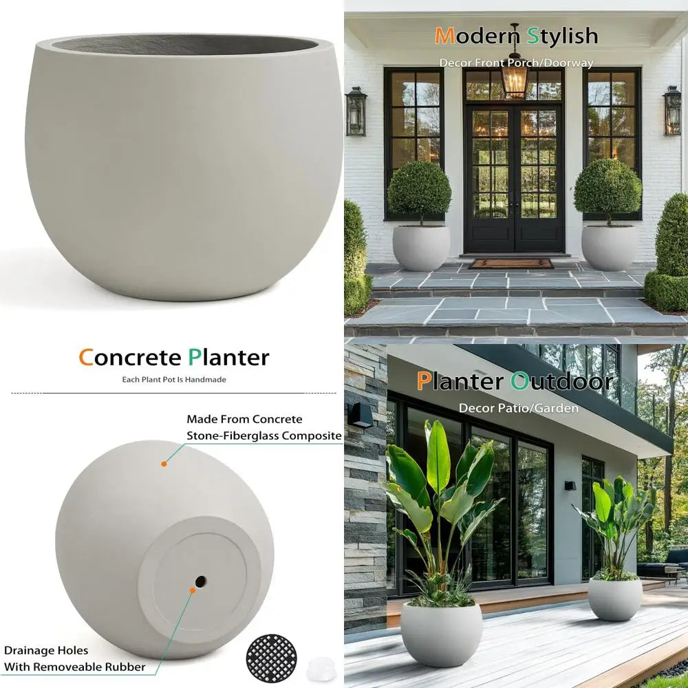 Large Gray Tall Cement Plant Pots for Outdoor Indoor
