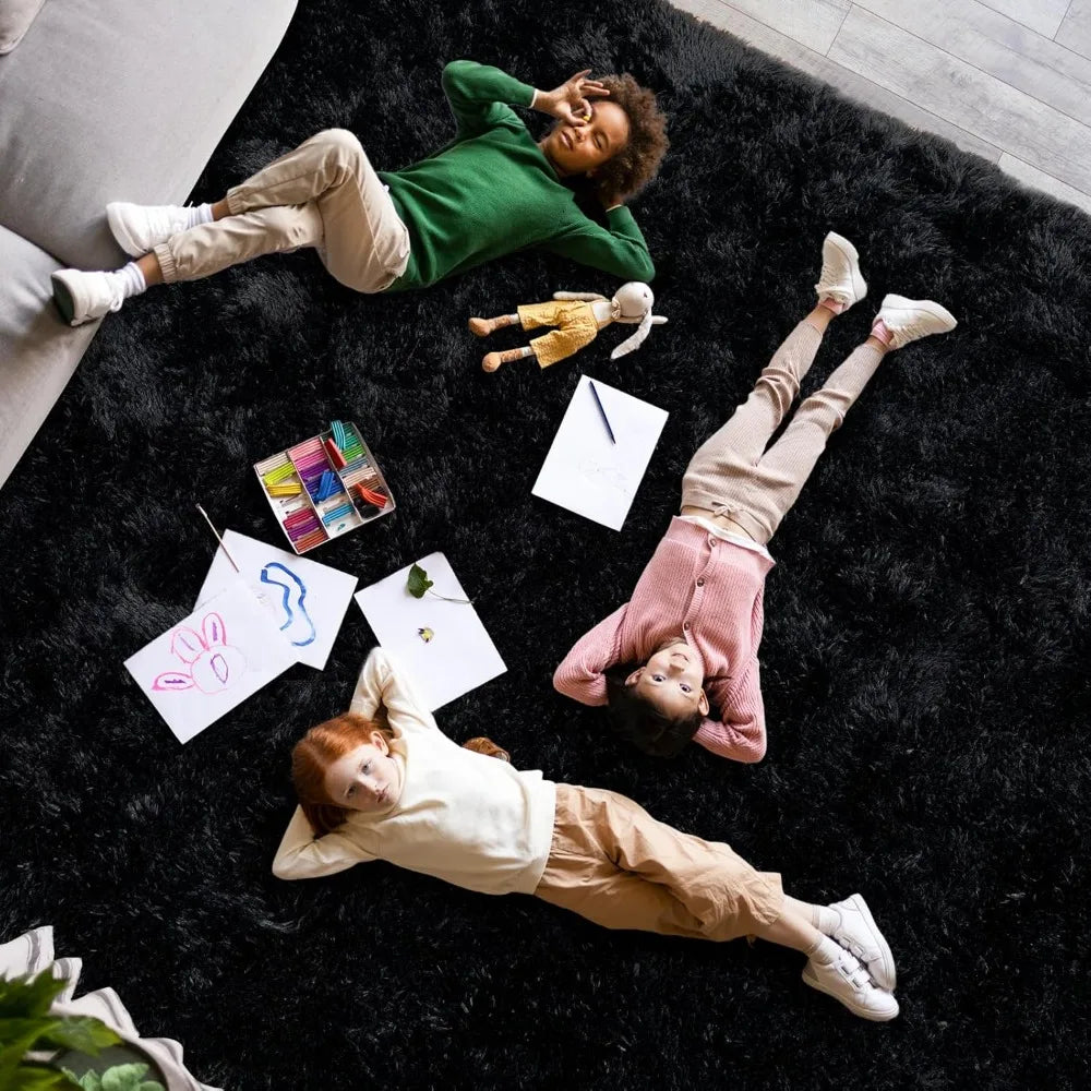 Large Modern Shag Rugs 8x10 Black Fluffy Area For