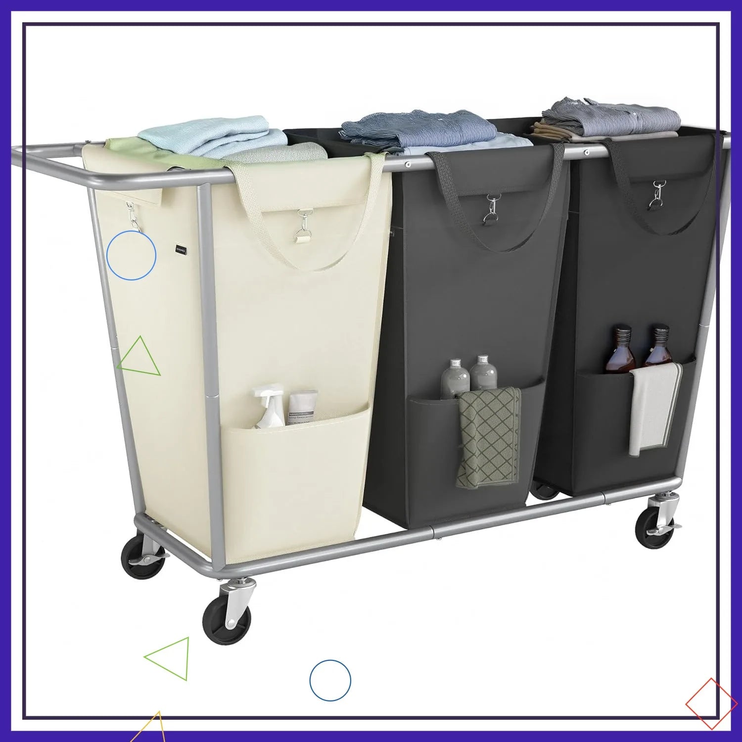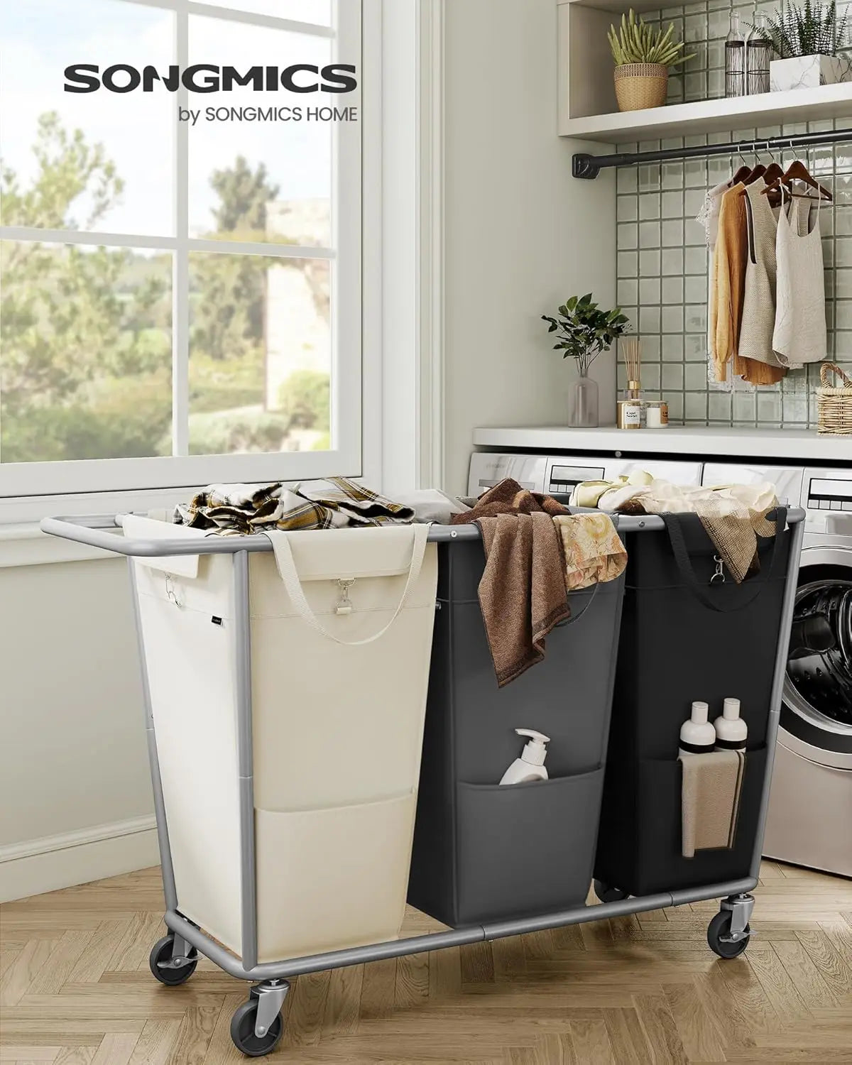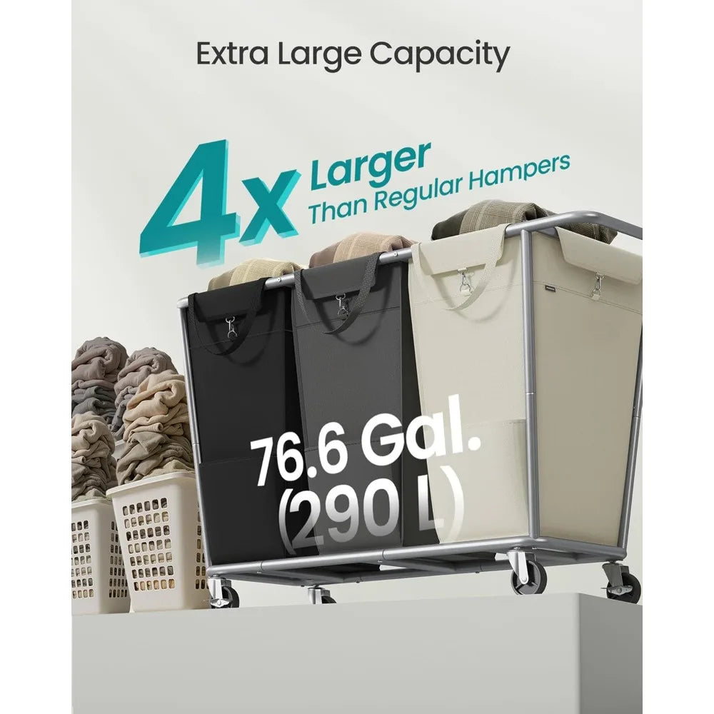 Large Rolling Laundry Basket with Wheels Section Sorter Hamper