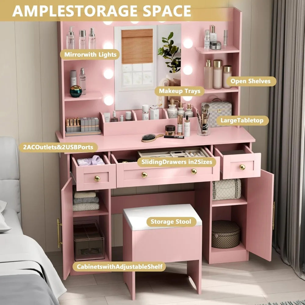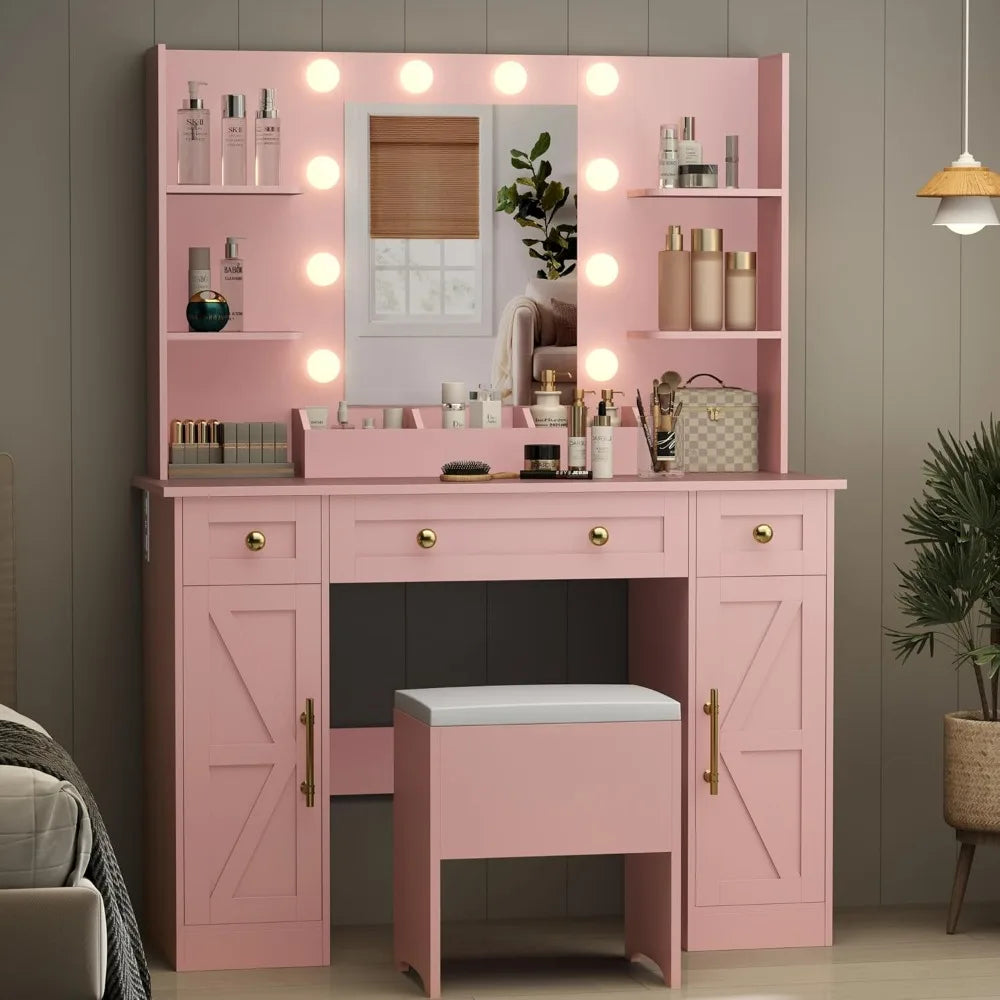 Makeup Table with Mirror and Light Dressing Storage Drawer