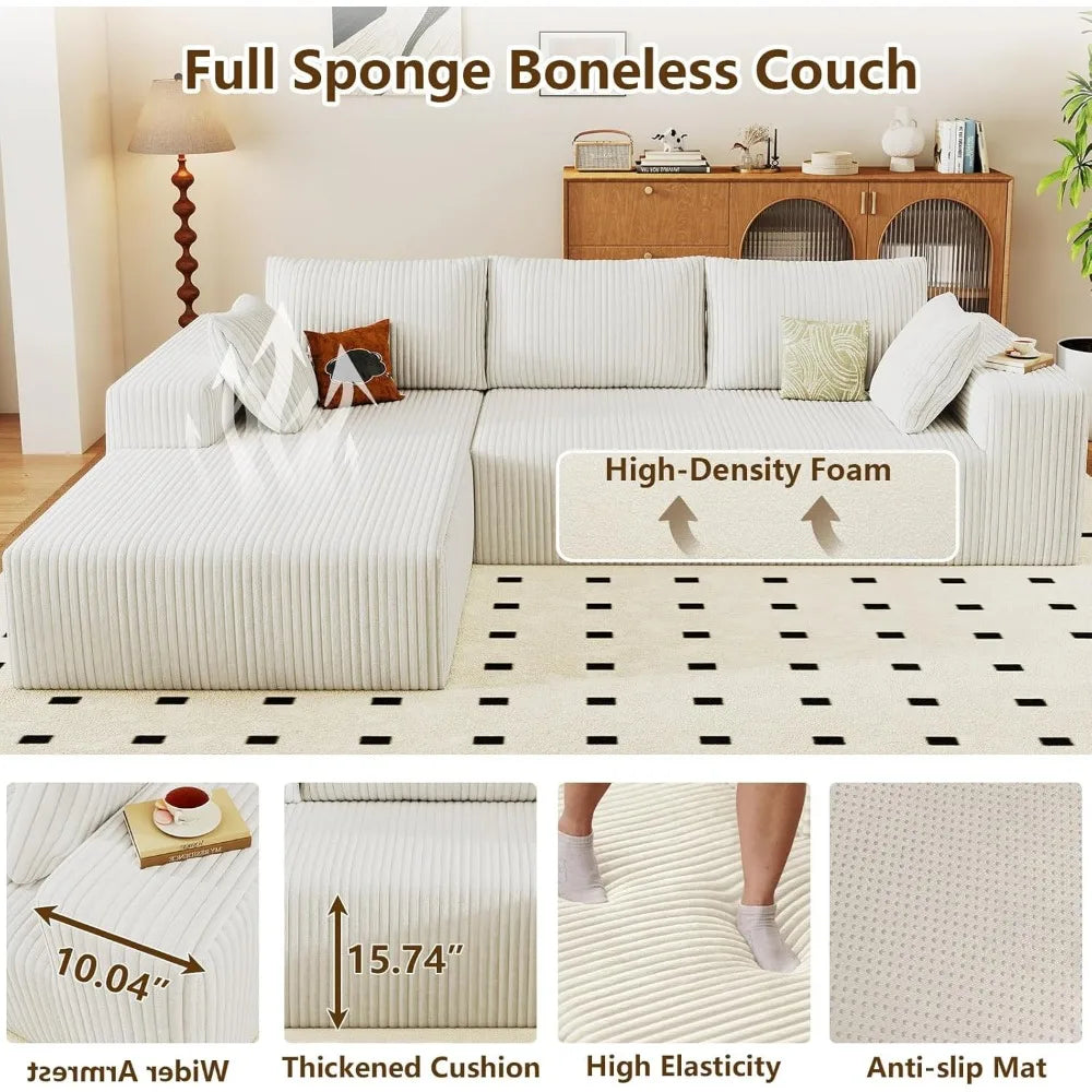 Memory Foam Chaise Lounge Sectional Sofa Deep Seated Cloud