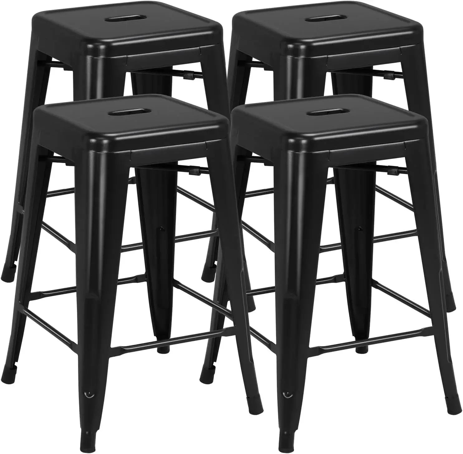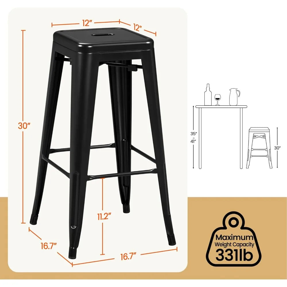 Metal Bar Stools Set Height Backless Bartools Indoor Outdoor - Stackable