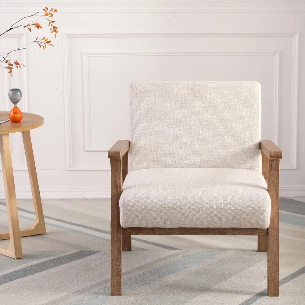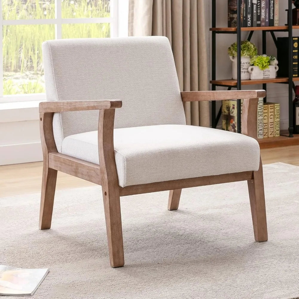 Mid Century Modern Linen Upholstered Accent Chair Comfortable