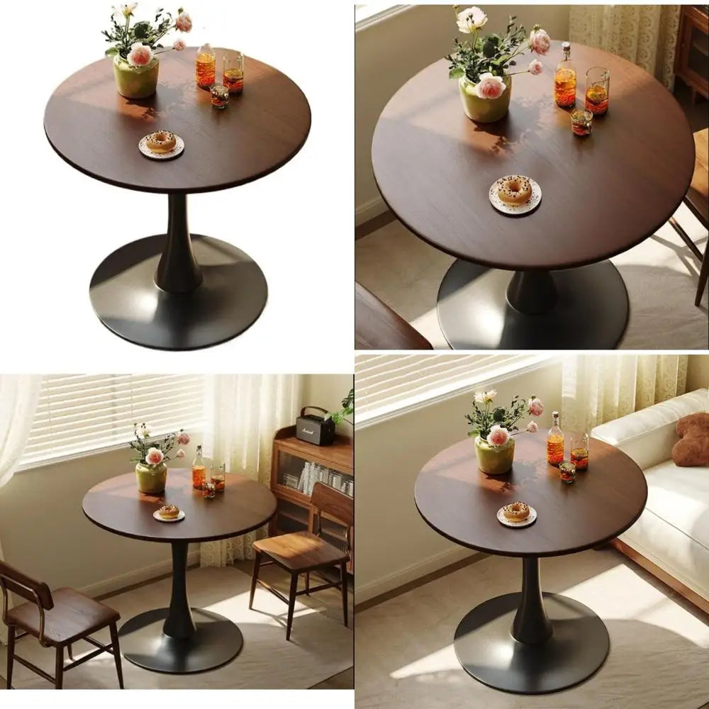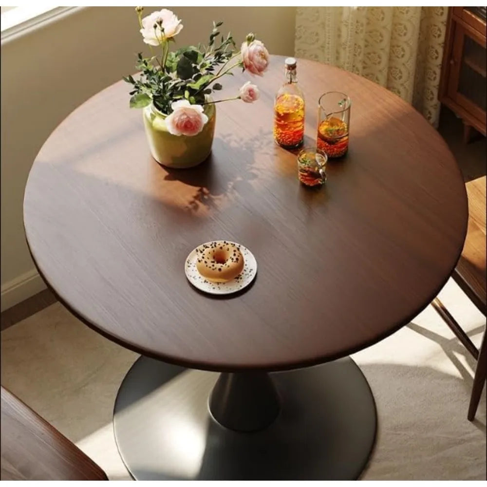 Mid Century Modern Walnut Round Dining Table For