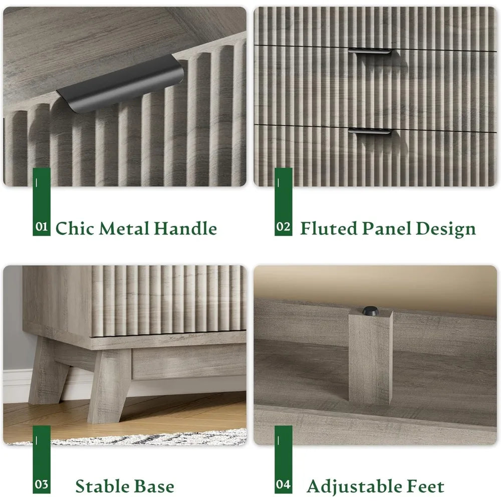 Modern Drawer Fluted Dresser Wide Metal Handle Chest
