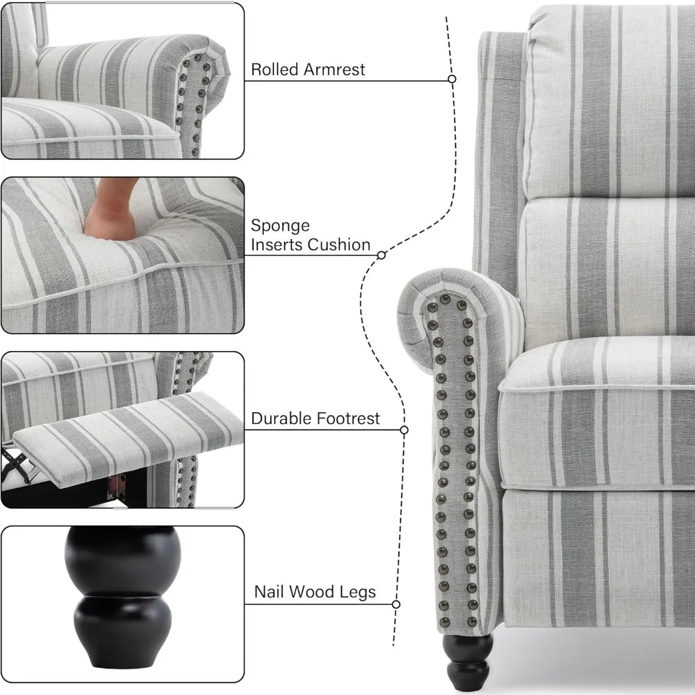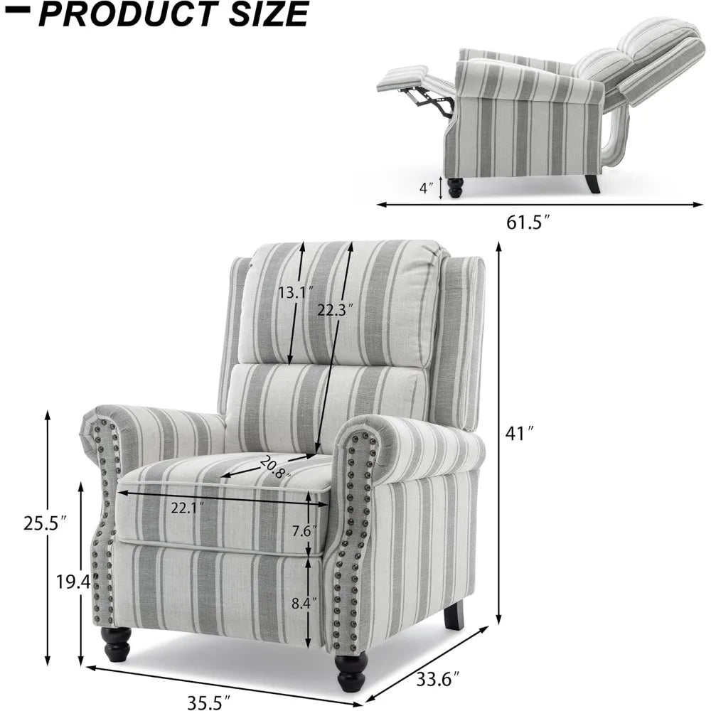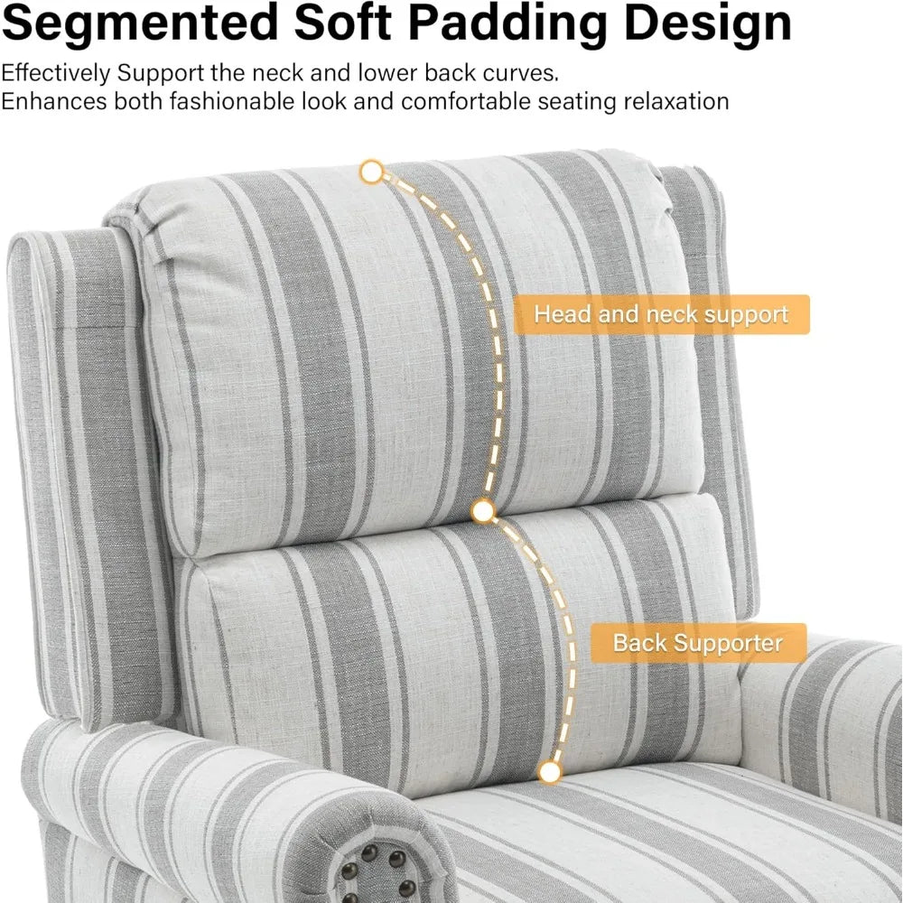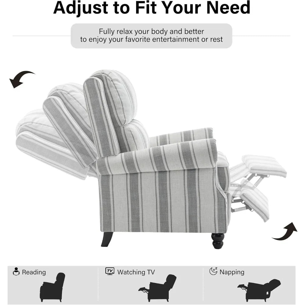 Modern Grey Stripe Recliner Chair with Adjustable Backrest - Adjustable Height