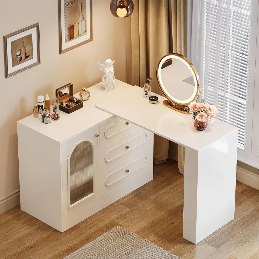 78-Inch Modern Shaped Makeup Vanity Desk with Drawers And