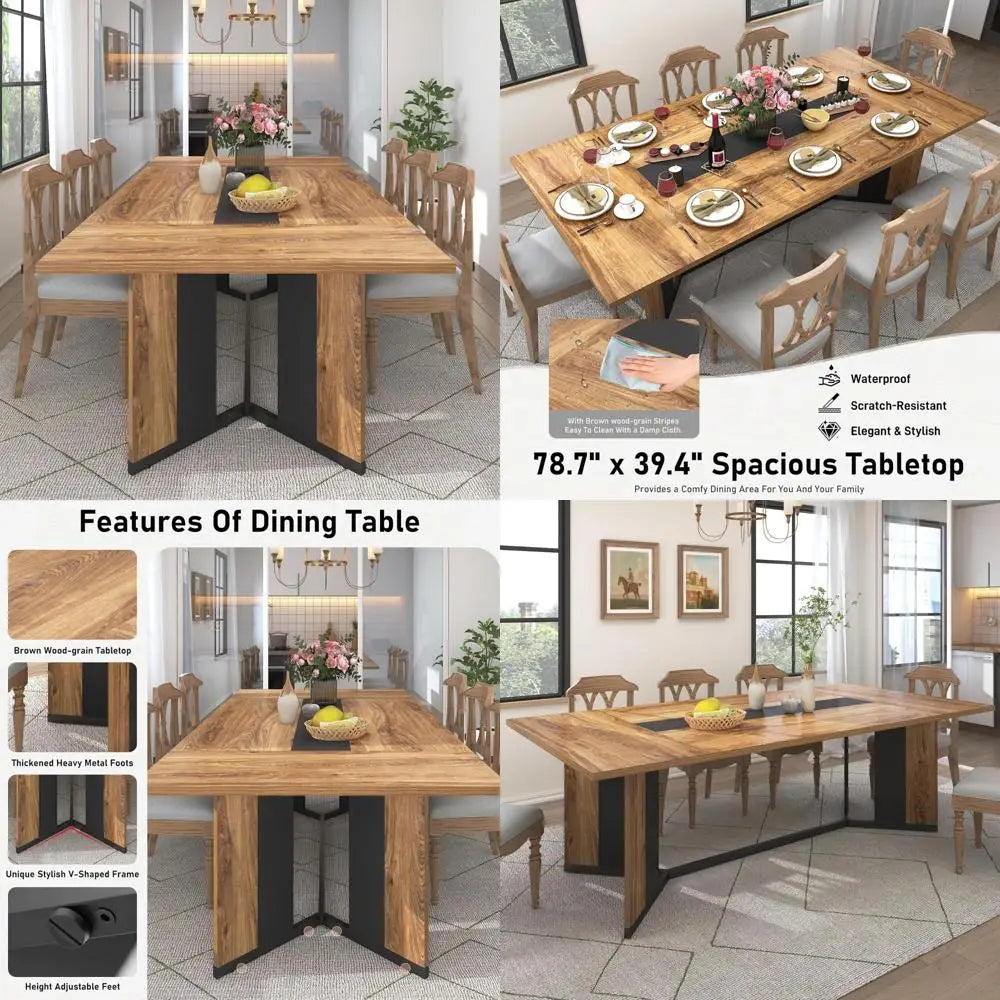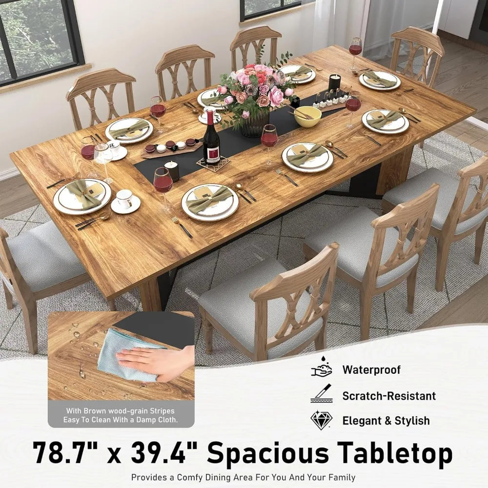 78-Inch Modern Large Rectangular Dining Table Inch Seats Waterproof