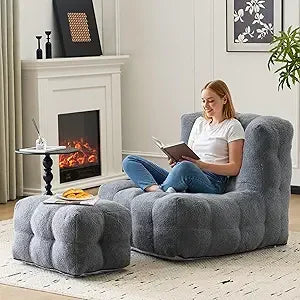 Modern Oversized Lounge Chair with Ottoman Comfy Single